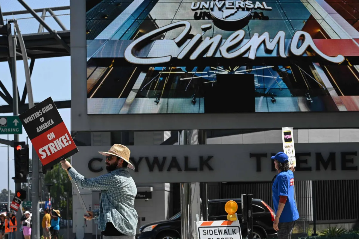 إضراب كتّاب هوليوود خارج يونيفرسال ستوديوز (أ.ف.ب)