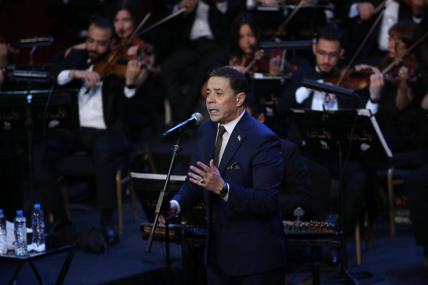 كذلك أحيا الفنان المصري ذكرى رحيل الأخوين رحباني بتقديم أغنية فيروز «شط الإسكندرية»، فطالبه الجمهور بإعادتها غير مرة. واستكمل الحفل بعدد من أشهر الأغنيات التراثية للموسيقيين الراحلين، فقدّم «أول مرة تحب يا قلبي» للموسيقار منير مراد، و«فوق الشوك» للموسيقار محمد عبد الوهاب، و«قولوله» للموسيقار كمال الطويل، وأغنية «3 سلامات» للموسيقار محمود الشريف.