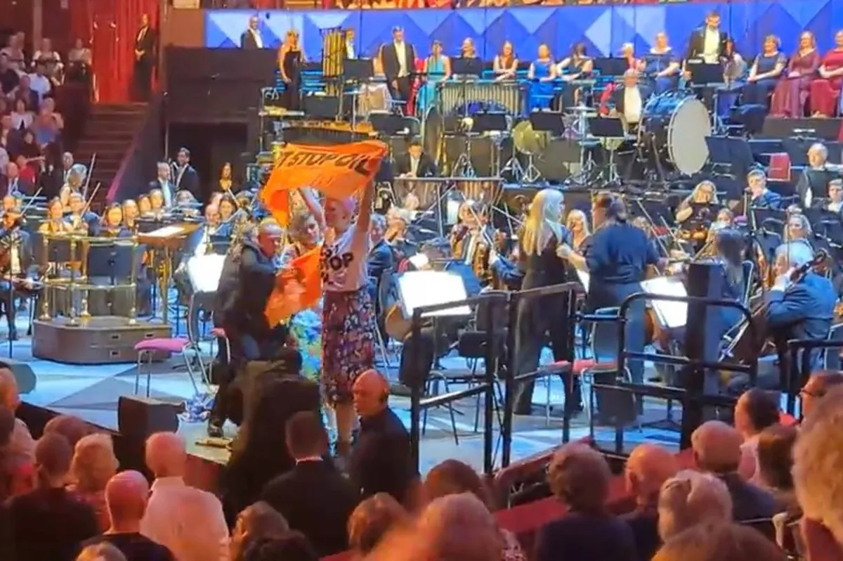عرقل متظاهرون من مجموعة «فقط أوقفوا النفط» البيئية، بث الليلة الافتتاحية لحفل «بي بي سي برومز»، كما عطلوا أيضاً تصوير العرض الكوميدي «المحطة الأخيرة»، بعد ذلك بساعات.