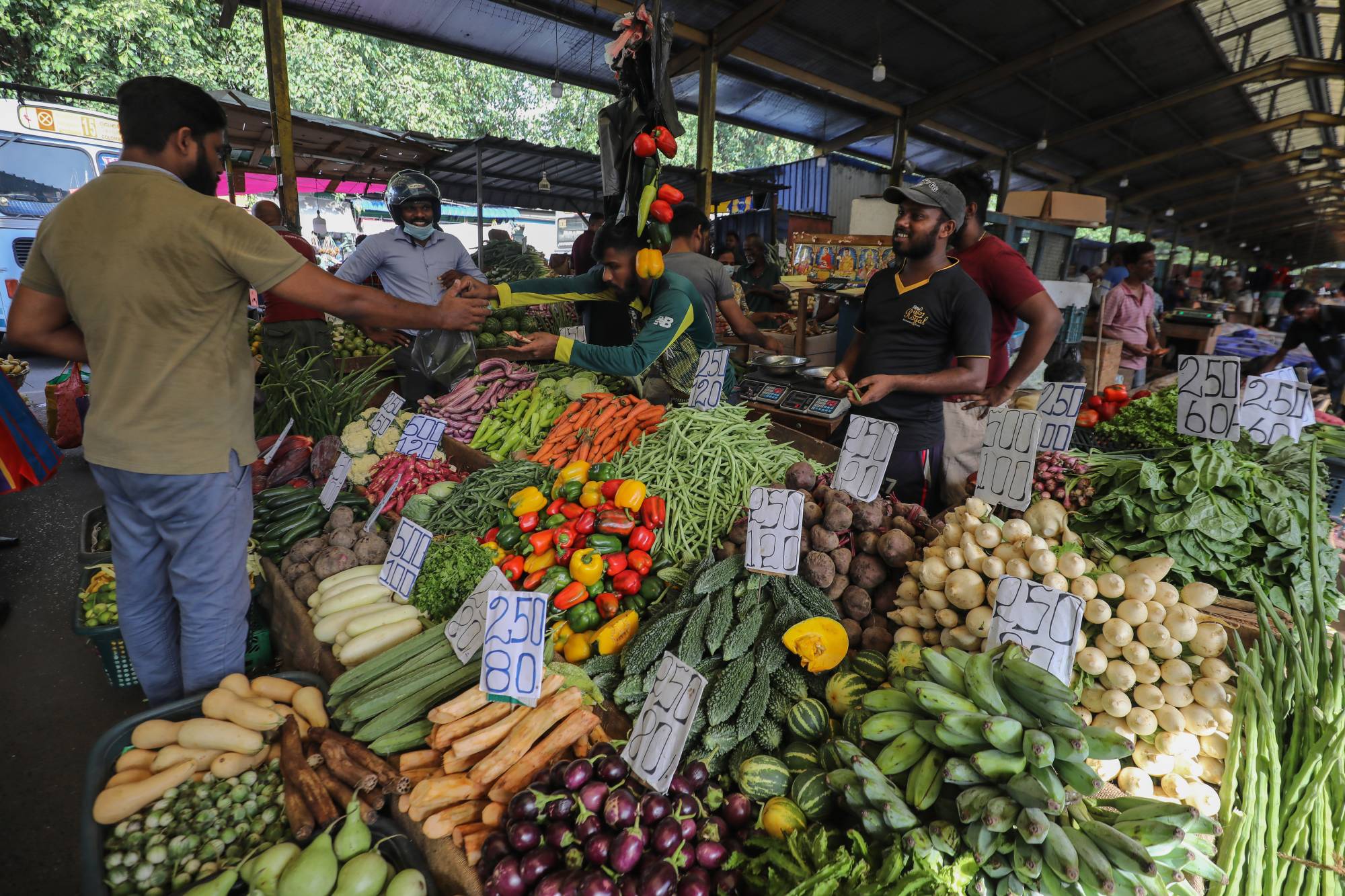 أشخاص يشترون الخضراوات من سوق محلية في كولومبو (إ.ب.أ)