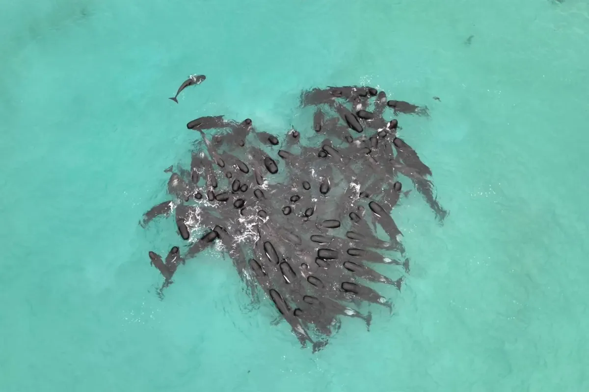 والحيتان الطيارة من بين الأنواع الأكثر مشاركة في الجنوح الجماعي في أستراليا.