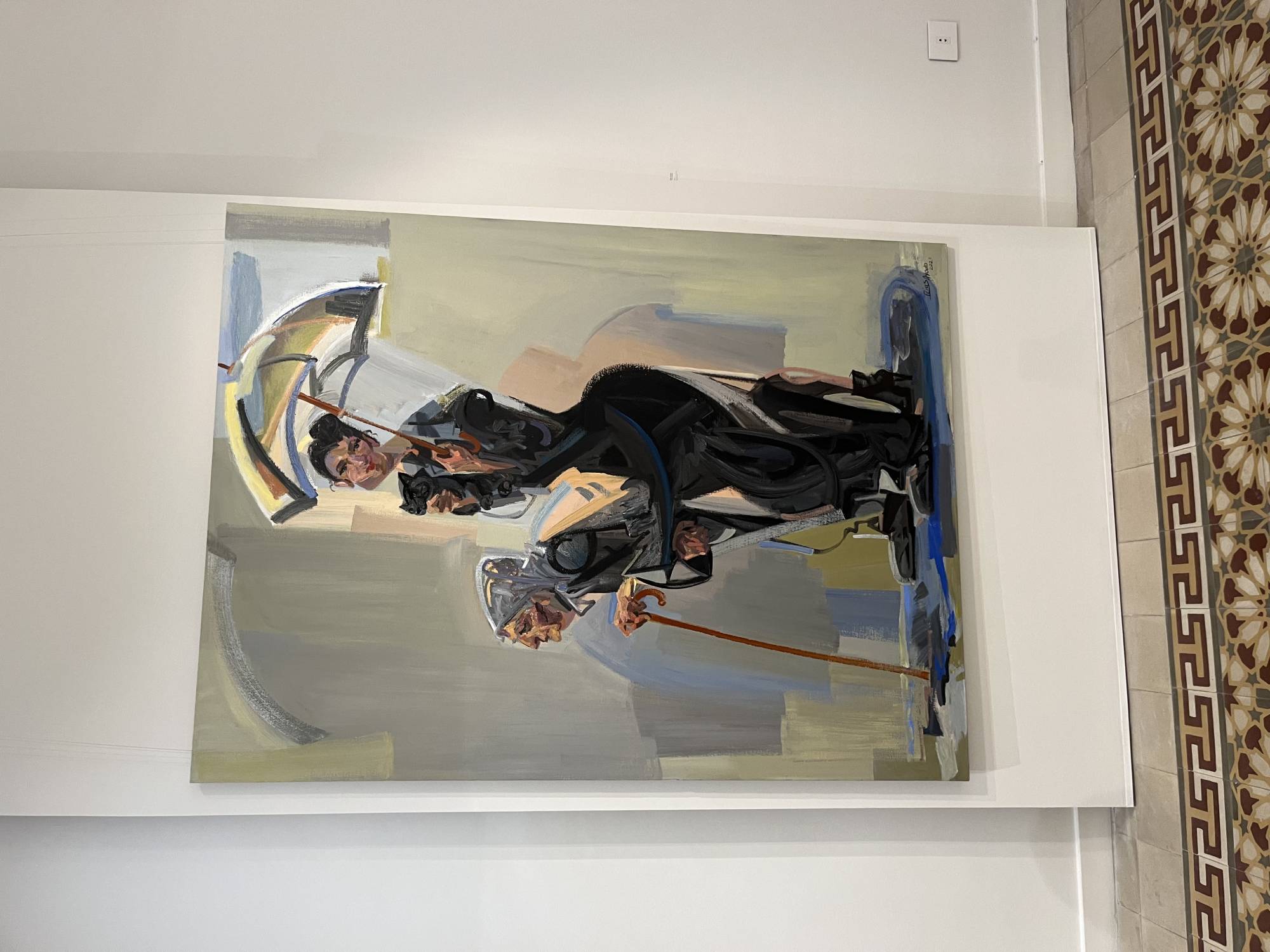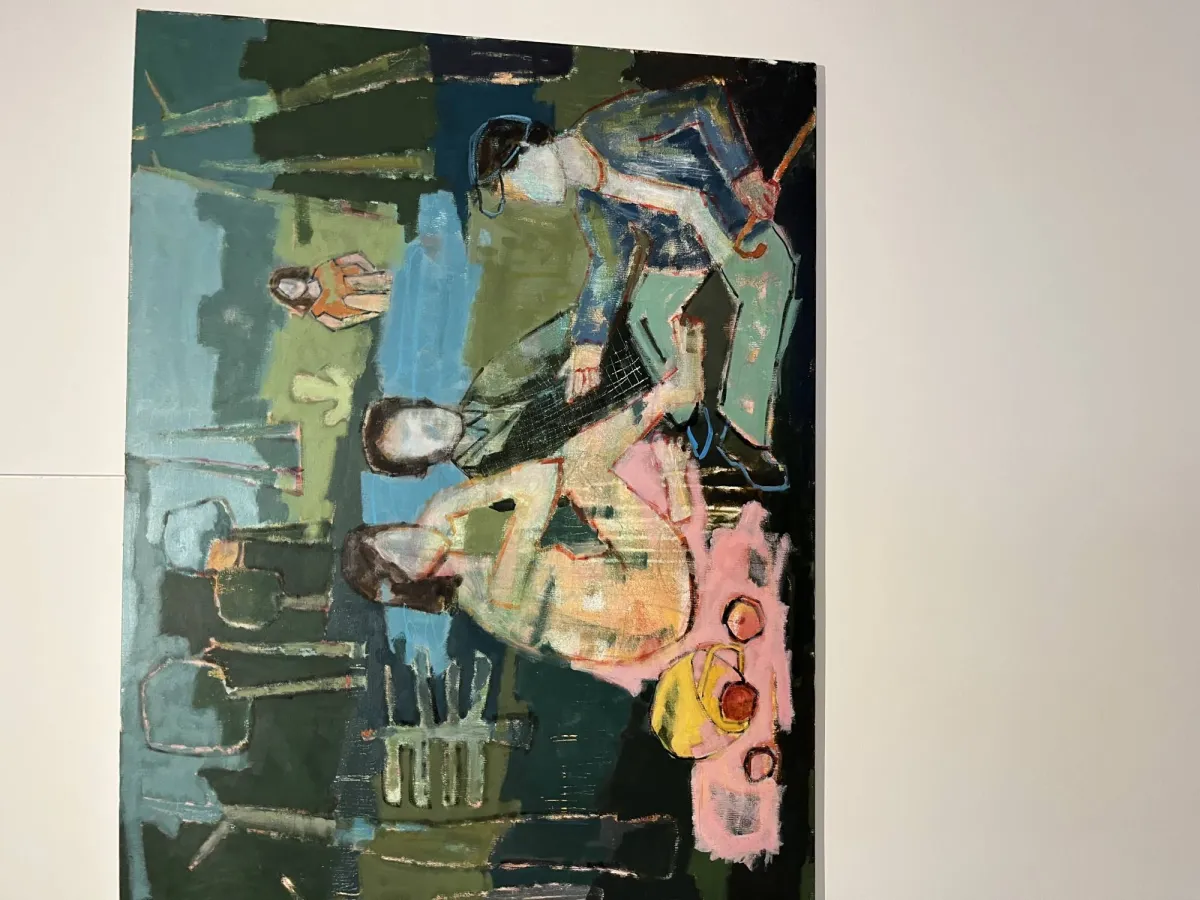 وتطل عليك لوحة جورج باسيل «في أحد الأزمنة». ويصور فيها امرأة متعبة بتجارب الحياة وقد أنهكها التفكير. فتمسك بسيجارة تنفخ بدخانها همومها المتراكمة والبارزة في عينيها الجاحظتين. «إنه يحمل في جميع لوحاته ما يذكره بعيون والدته الراحلة المتأثر بها كثيراً»، تشرح هناء لـ«الشرق الأوسط». أما غيلان صفدي المتأثر بفن المسرح فيقدم في لوحاته مشاهد من الحياة. شخصيات شعبية وأرستقراطية ودينية وأخرى تنفخ بالبوق تحضر في نفس اللوحة «حياة الآخرين». فتحدث ناظرها بألوان صيفية فاهية، استخدمها على ملامح وجوهها والإكسسوارات التي تحملها. ومن خلال خلطته هذه يبرز «كركتيرات» من لحم ودم.