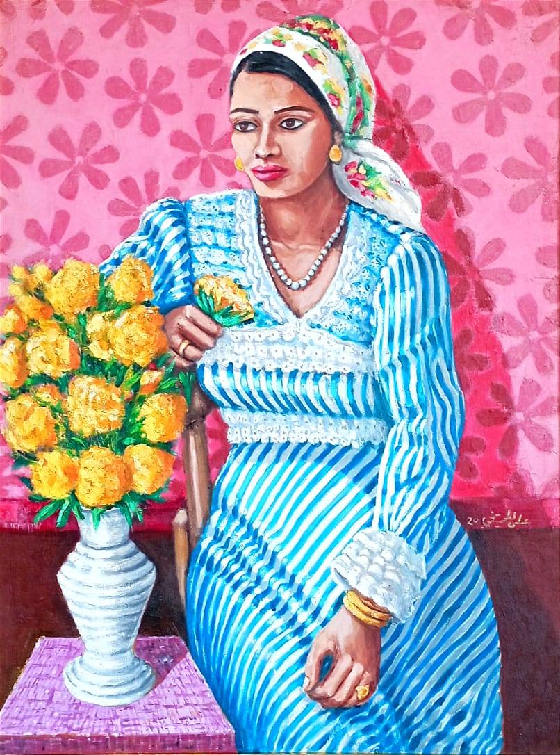 بدوره، يتجول الفنان علي المريخي بين نماذج من «ناس النهر»، تحديداً في منطقة «نجع الشديدة» بقرية «أبو الريش» في أسوان، حيث المنازل المقامة على حافة النهر، والمميزة باللون الأبيض.