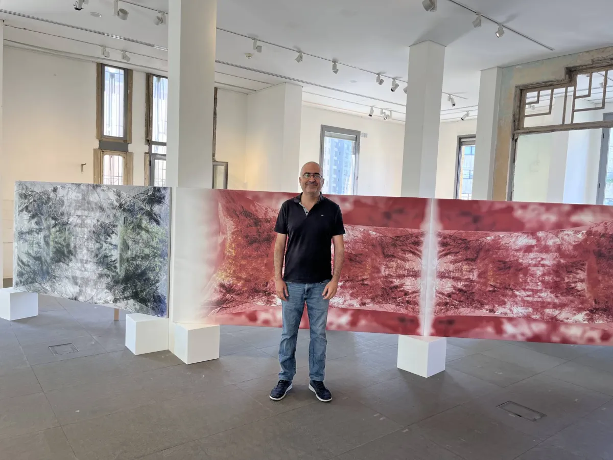 تتفرس في لوحات رالف الحاج الموزعة بشكل دائري في باحة المعرض. ومن خلاله يروي قصة البيت الذي ترعرع فيه. فهو أيضاً تنشق دخان الحروب وسمع الانفجارات ولامسته القذائف.