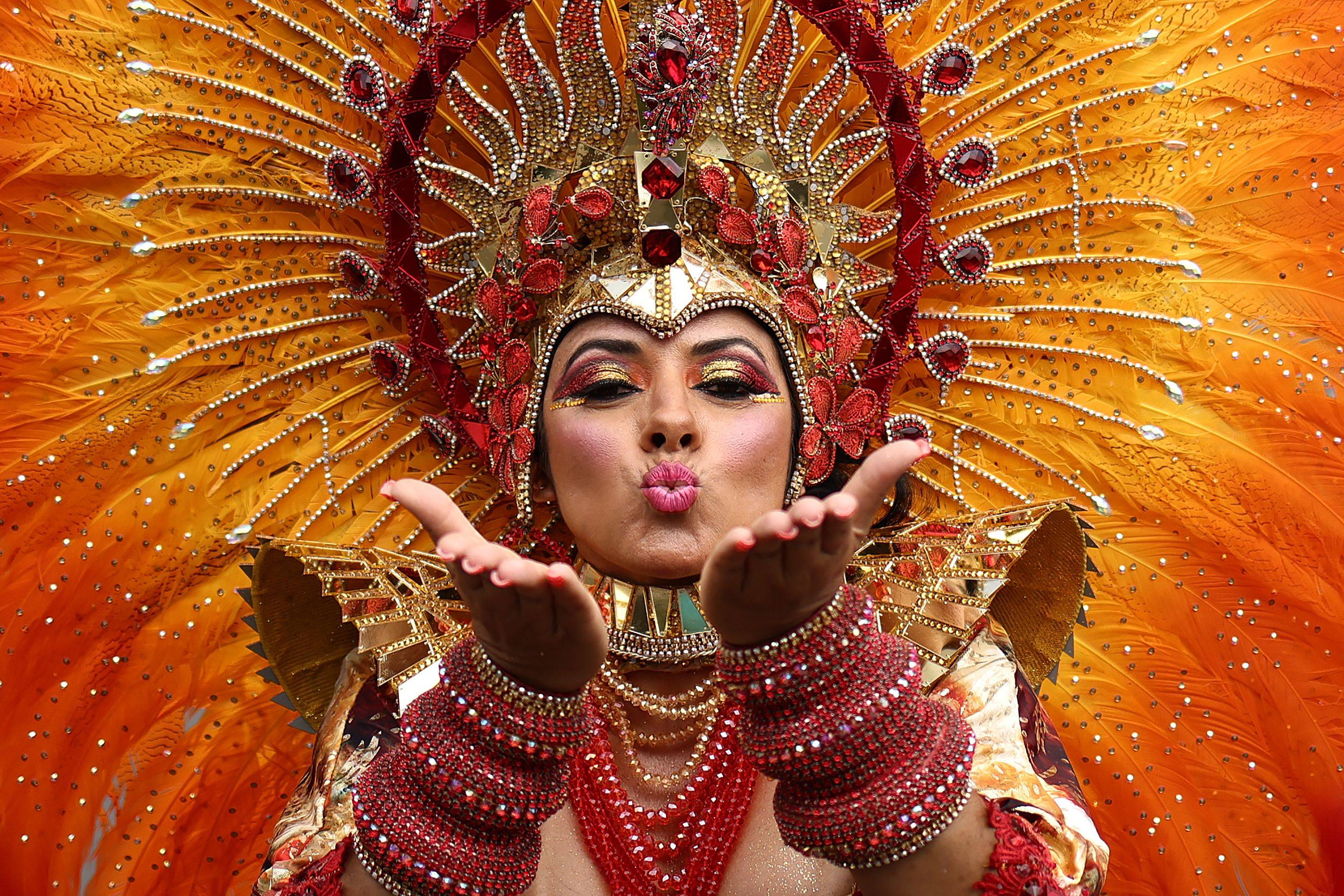 فتاة مشاركة في عرض كرنفال نوتينغ هيل في غرب العاصمة البريطانية لندن (أ.ف.ب)