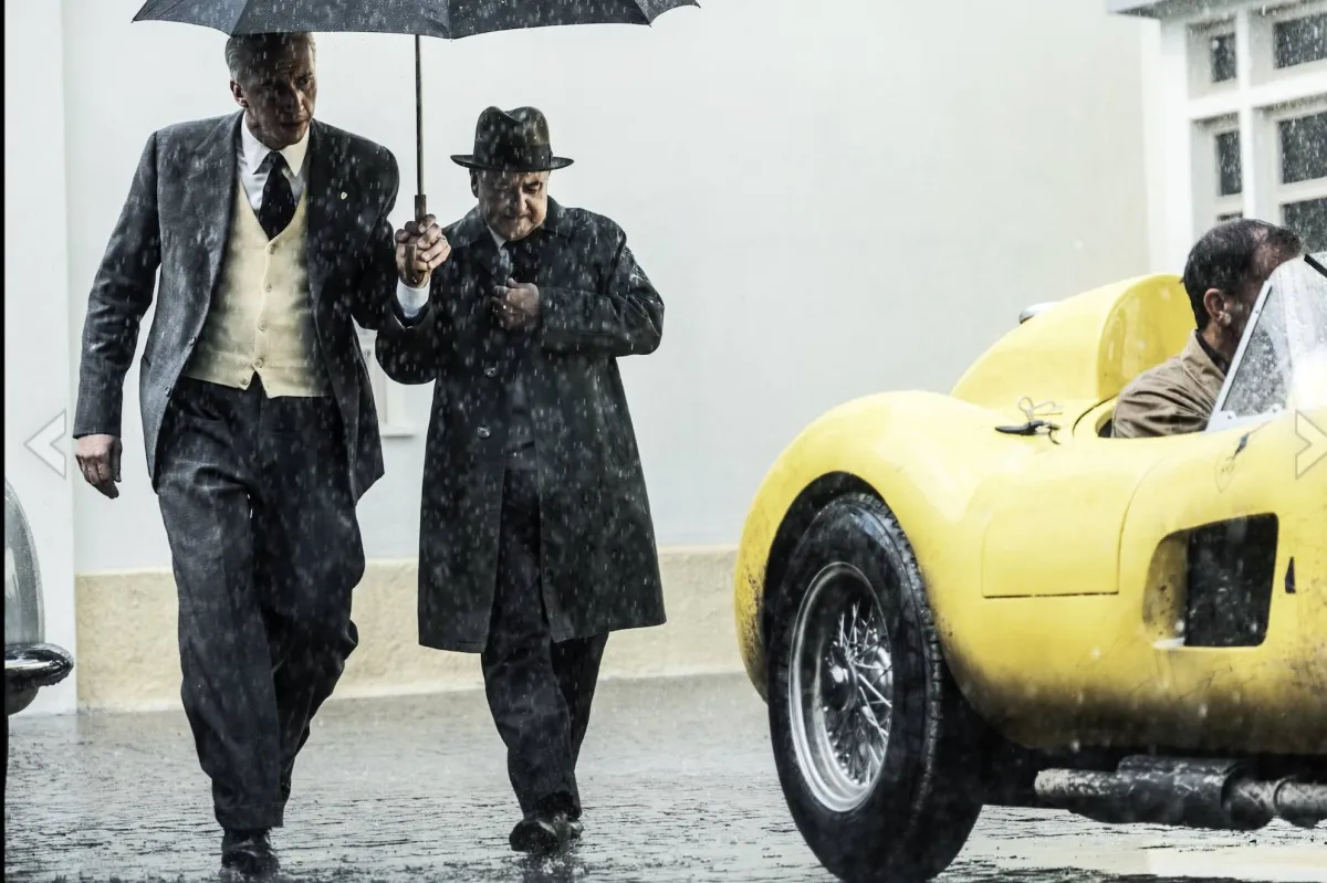 فيلم آخر عن حياة أخرى، هو «فيراري»، عن مصمم سيارات السباق إنزو فيراري في حقبة محدّدة من حياته، تلك التي راهن فيها على تحقيق النجاح في ميادين السباق بسيارة تحمل اسمه ومن صنعه. هذه الحبكة تُدمَج بالوضع العائلي للشخصية، مع تأجيج مشاعر تكمن في صدر فيراري وتحول بينه وبين شعوره بالسعادة، إلى أن يتحقق الفوز المُشتهى.