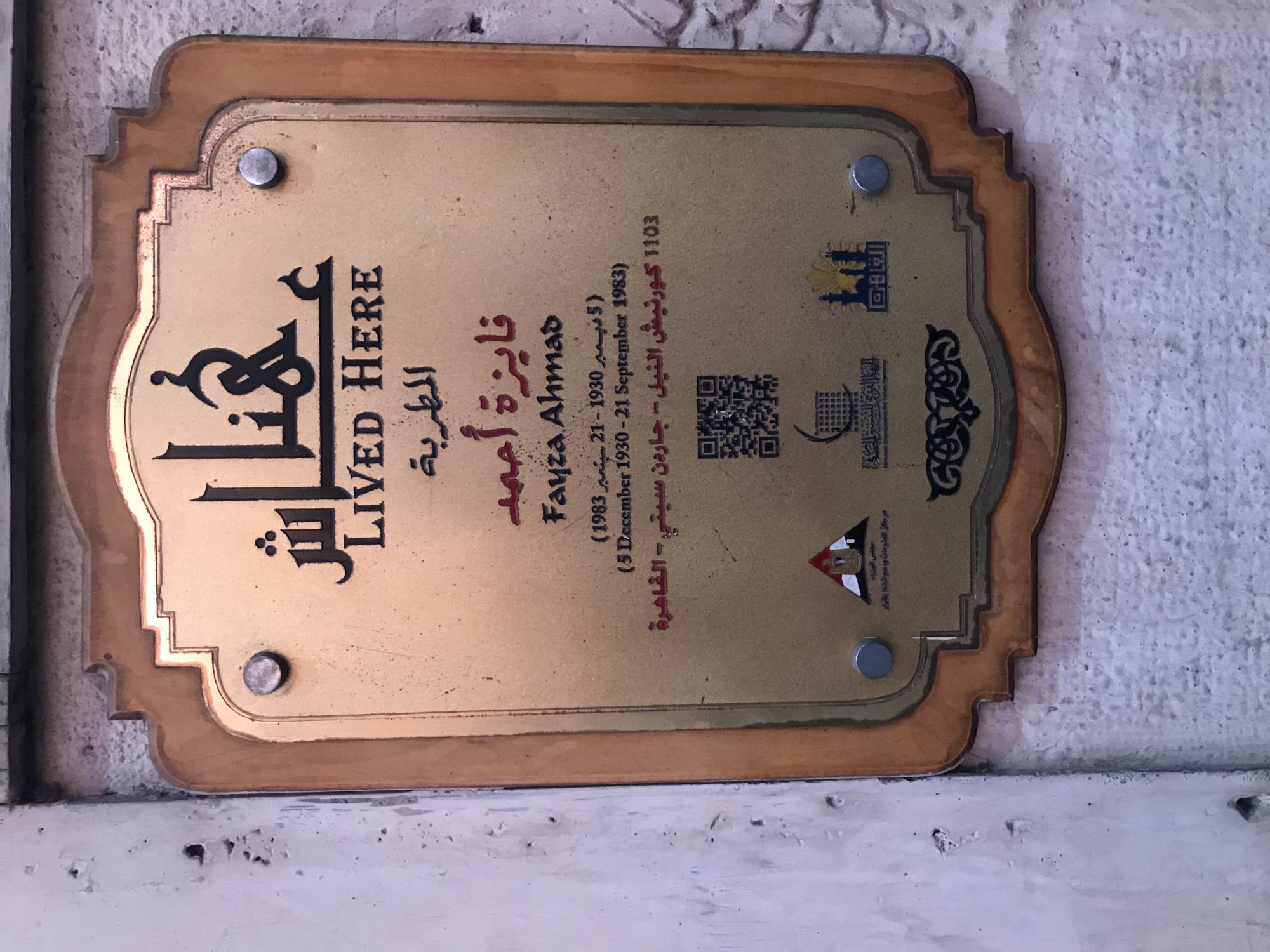 كانت وزيرة الثقافة المصرية نيفين الكيلاني، قد استجابت لطلب الفنانة نجلاء فتحي إعادة لوحة «عاش هنا»، التي تحمل اسم زوجها الإعلامي الراحل حمدي قنديل، إلى واجهة المبنى الذي تقطنه في ضاحية مصر الجديدة، بعدما سُرقت.