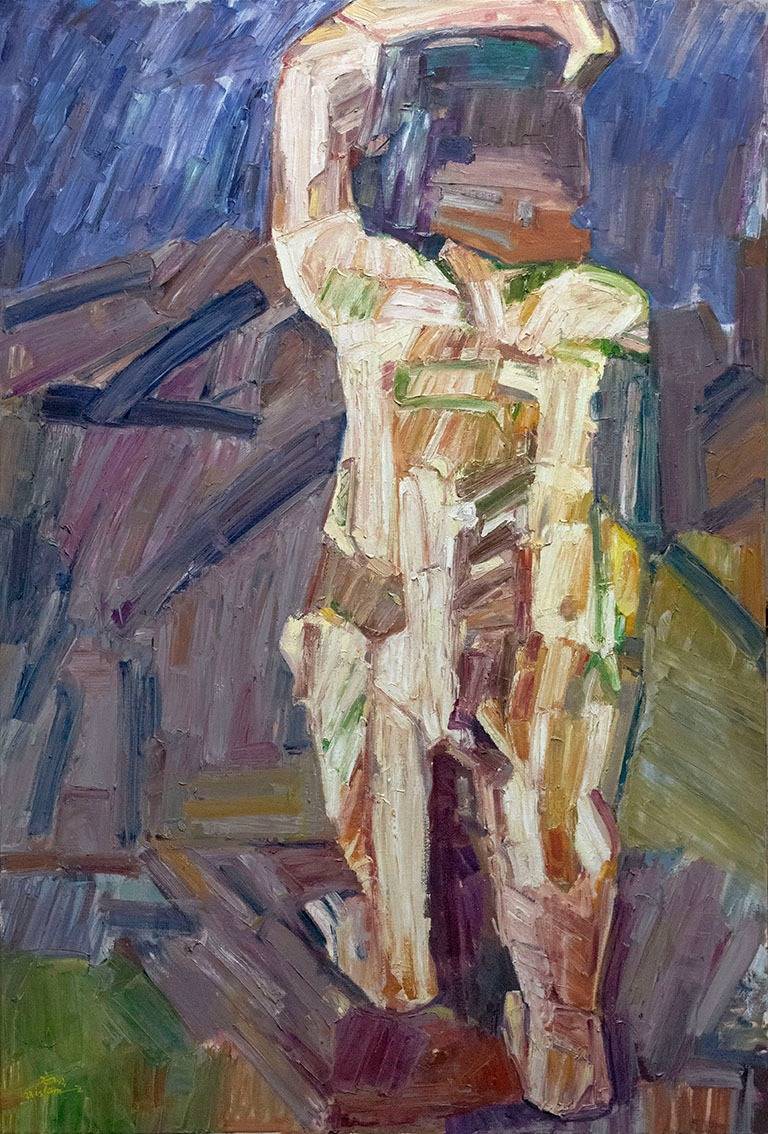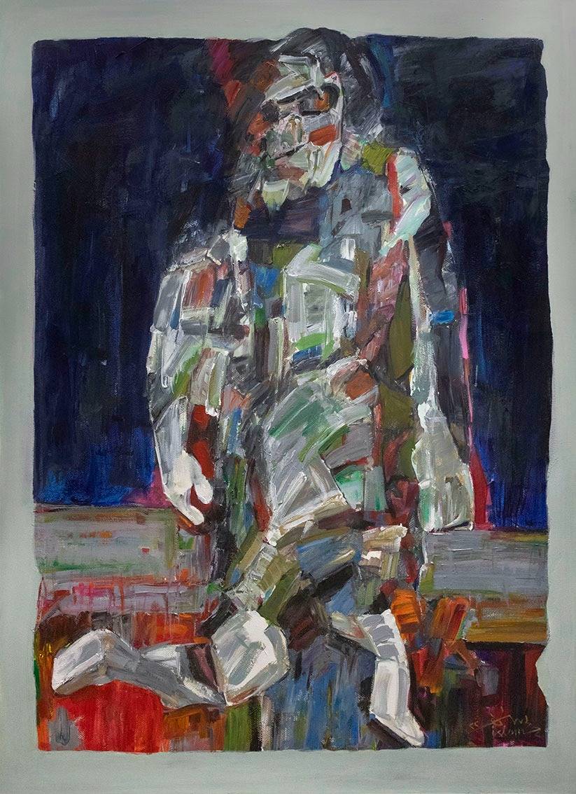 لم يخدع الفنان جمهوره! فمنذ البداية اختار عنواناً غامضاً أيضاً لمعرضه، غير مكتفٍ بغموض شخوصه؛ هو «ظلّ الغائب». يقدّم شخوصاً تغلب عليهم «المونوكرومية» (أحادية اللون)؛ عبر 30 لوحة يتصدّرها شخص واحد، من دون تفاصيل أو مفردات أخرى. وفي الغالب هو شخص مشوَّه، أو ينقصه أحد أجزاء جسده.
