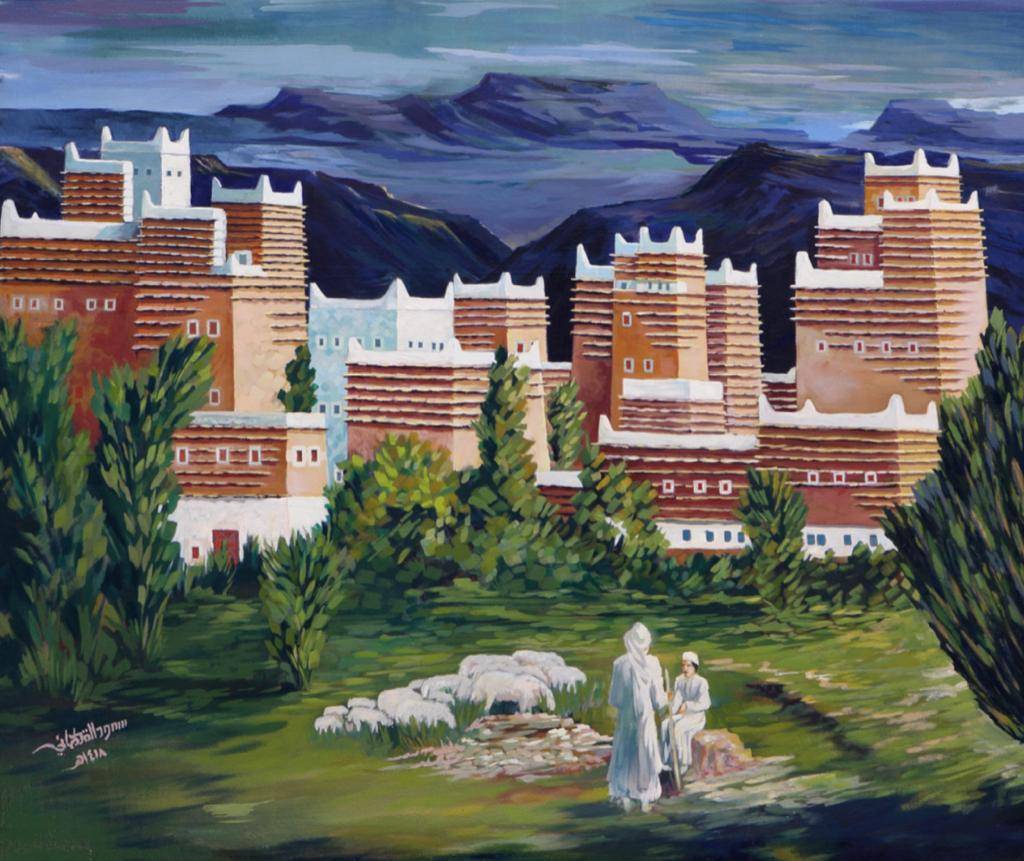 من أعمال الفنان سعود القحطاني التي تناولت طبيعة مدينة أبها (خاص للشرق الأوسط)