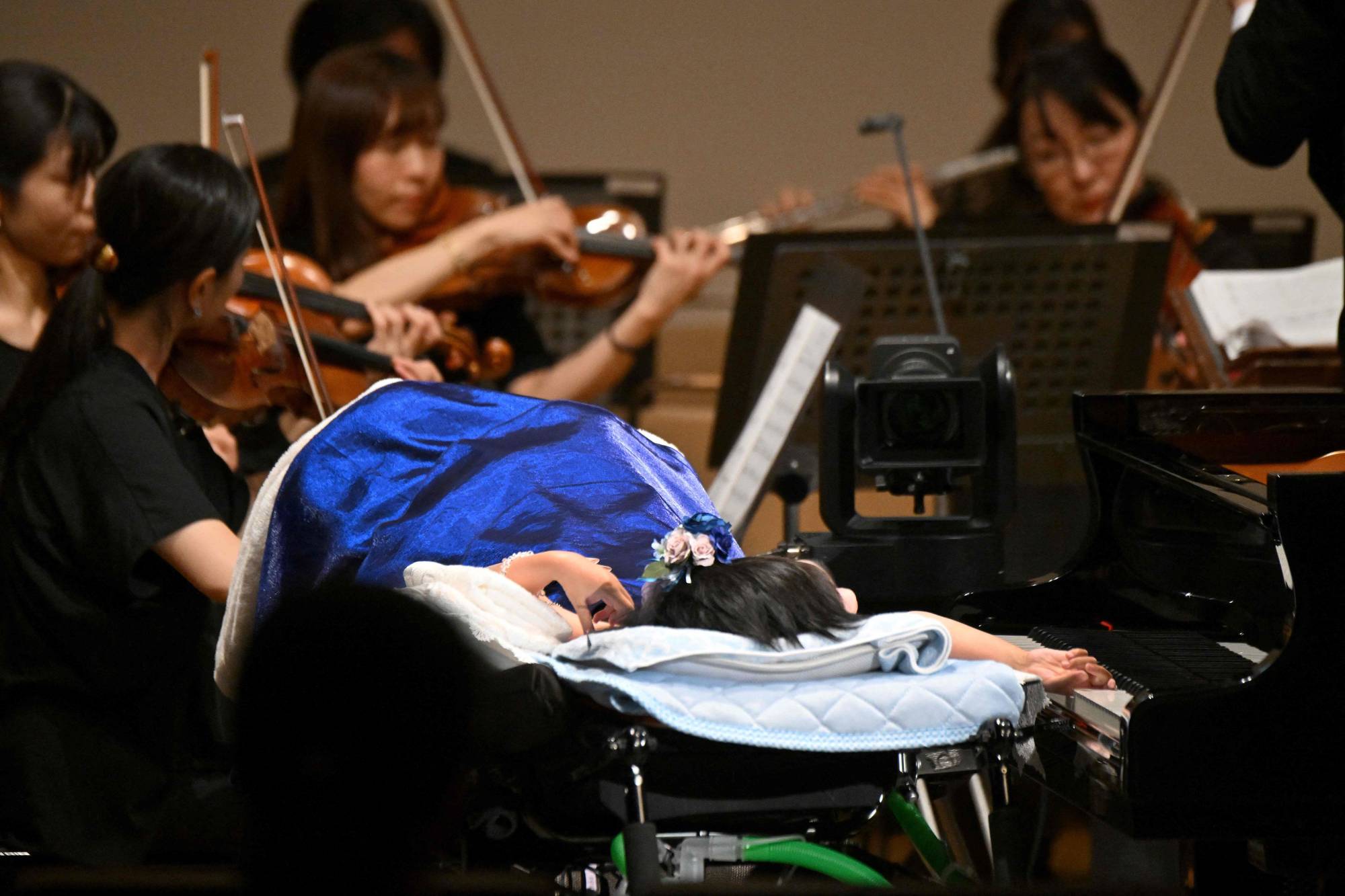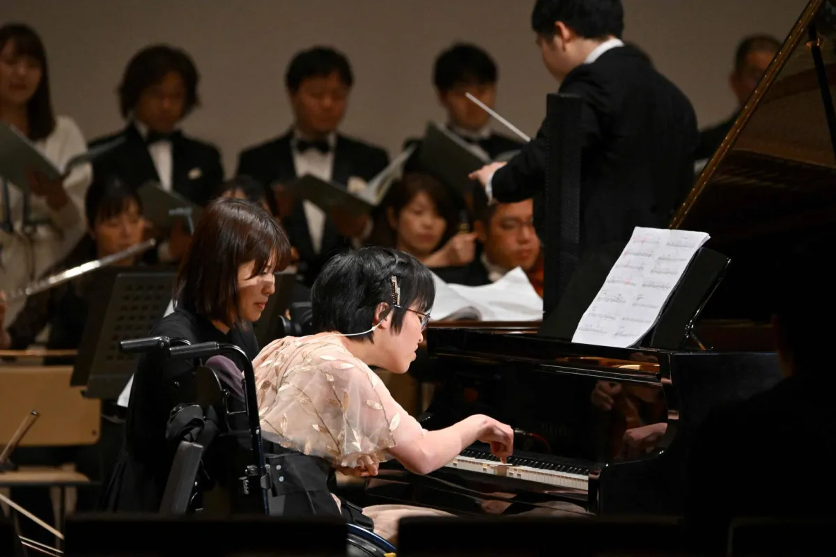 كانت أوسامي التي تعاني شللاً دماغياً واحدةً من 3 موسيقيات يابانيات من ذوات الإعاقة عزفن، يوم الخميس الماضي، السيمفونية التاسعة لبيتهوفن مع «يوكوهاما سينفونيتا» في قاعة سانتوري في العاصمة اليابانية، مستخدمين بيانو يعمل بالذكاء الاصطناعي.