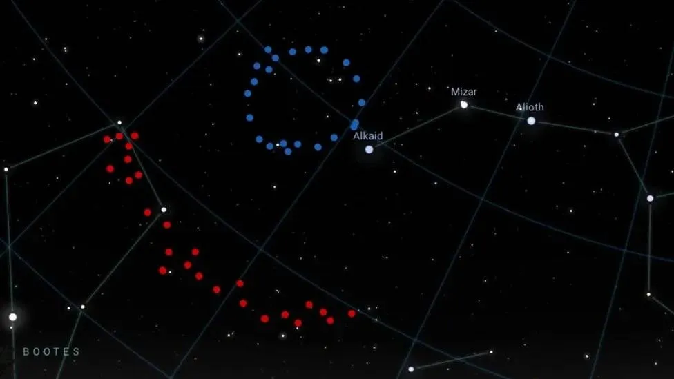وكل من الحلقة الكبيرة والقوس العملاق قريبان نسبياً بعضهما من بعض، بالقرب من كوكبة «Bootes the Herdsman».