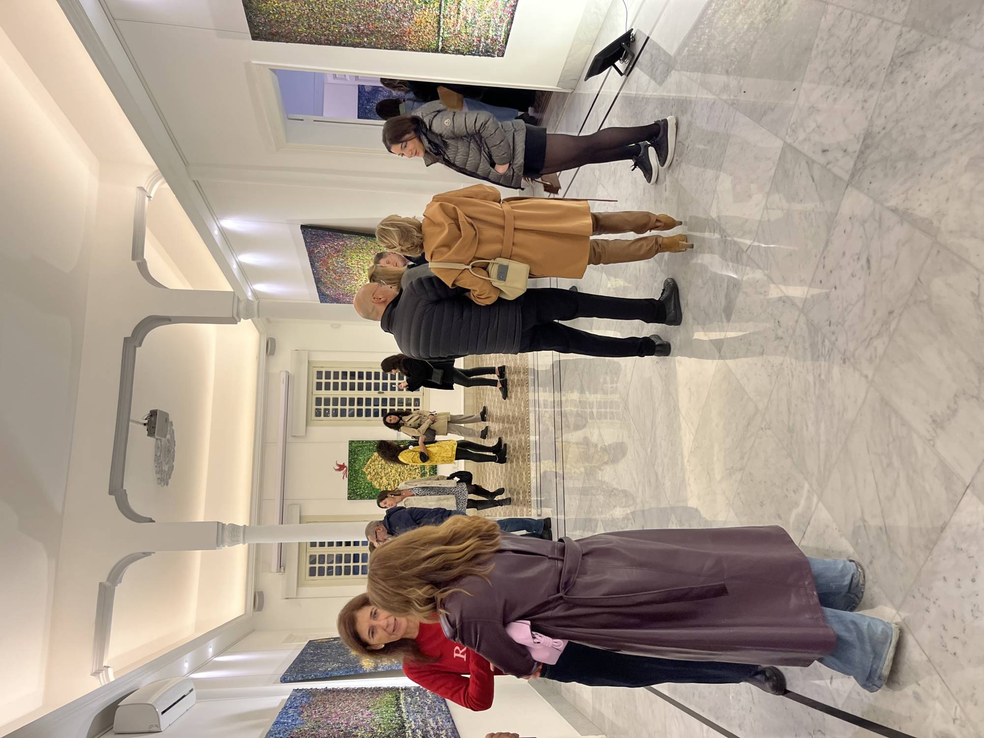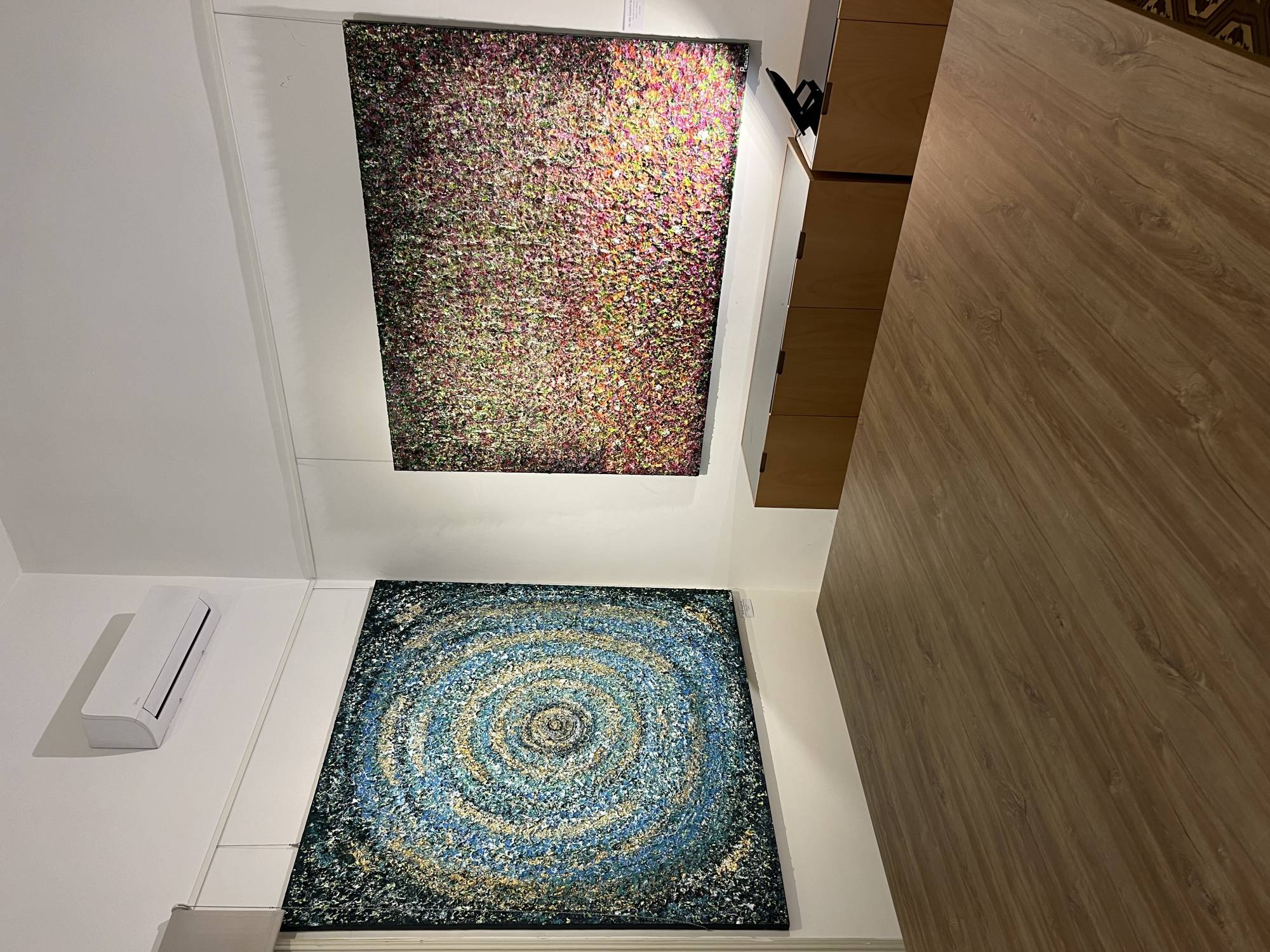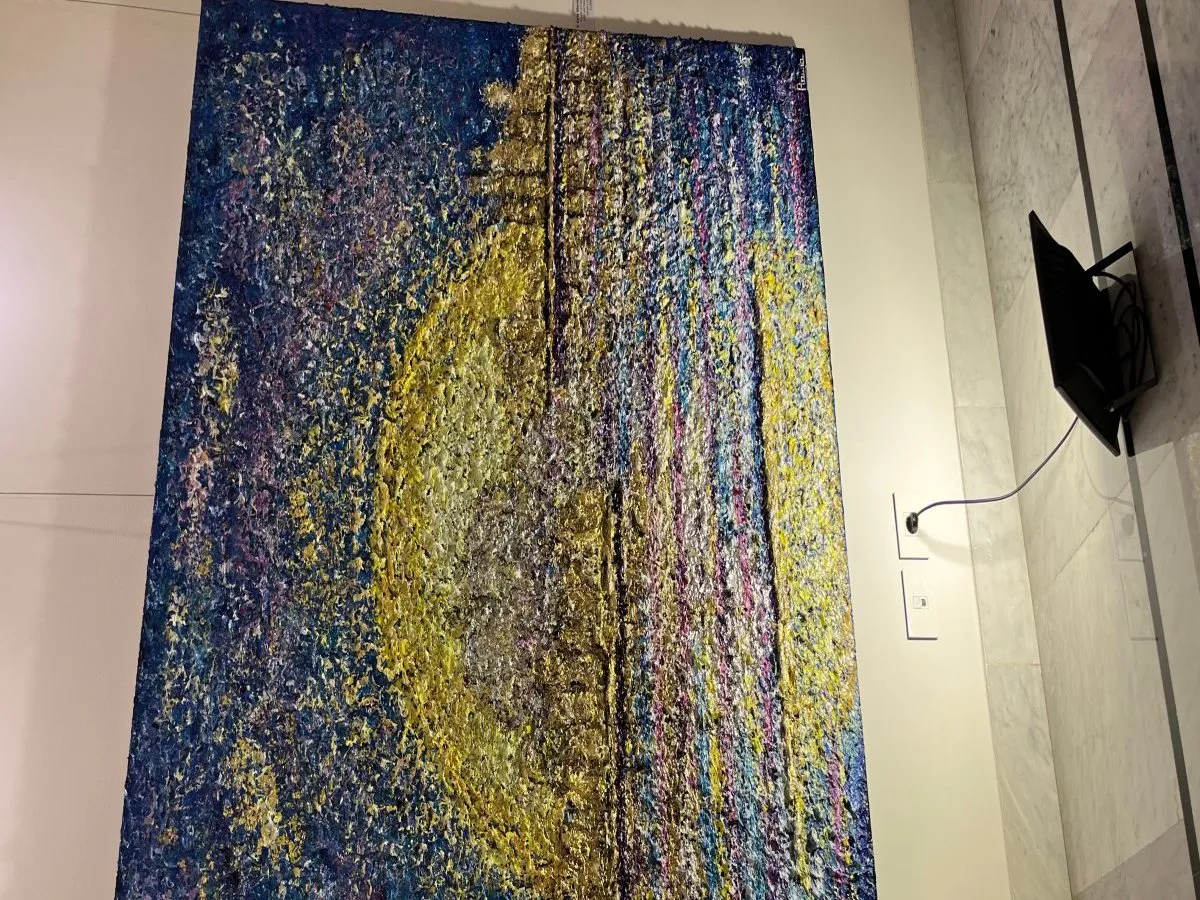 تستكشف لوحات المعرض بتأنٍّ؛ فضخامة أحجامها تفرض نفسها على ناظرها، تبهرك بمشهديتها منمنمة المحتوى المتلألئة كأنها مقتطَعة من الكون، فتشكل فضاءات فنية؛ كلّما اقتربت منها تلمس الدهشة.