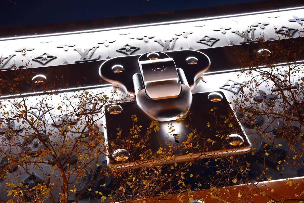 لم يكن صعباً على المارّة التعرُّف إلى هوية الحقيبة التي غطّت مساحة 22 ألف متر مربّع، والمصنوعة من الخشب والألمنيوم، لحَمْلها الحرفين الأولين المتداخلين لدار «لوي فويتون» الباريسية المتخصّصة في الصناعات الجلدية الفاخرة. وهي مستلهمة من أول حقيبة سفر أنتجتها الدار عام 1885، لتعود بحجم غير معهود، وتغطّي مشروعاً لتشييد أول مجمّع فندقي للدار الشهيرة عالمياً.