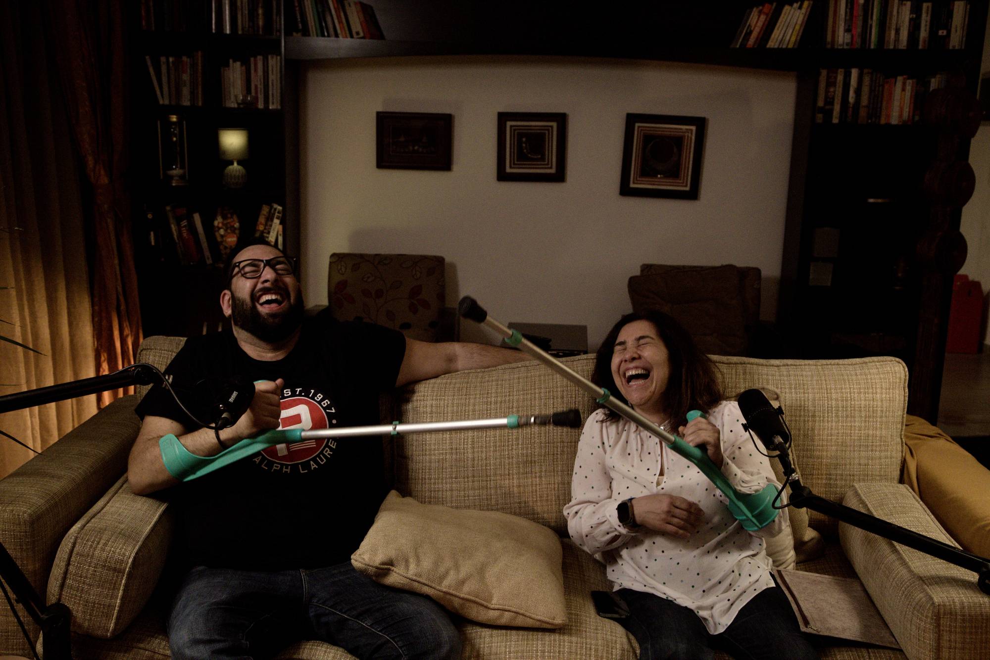 في الحلقة الأولى، تطلّ شابّة خسرت يدَها لكنها استطاعت أن تصبح مصمّمة أزياء وخيّاطة. أما في الحلقة الثانية، فيستضيف شارل وأمل شاباً مقعَداً يعاني من الوزن الزائد، يشارك قصصه المتعثّرة مع السفر. وتكرّ سبحة الضيوف وسط أجواءٍ من المرح والسخرية التي تُميّز البودكاست. عن هذا الإطار الهَزليّ يقول شارل: «إذا لم نسخر من أنفسنا فلن نتقبّل سخرية الناس منّا. أما إذا رآنا الناس متقبّلين لأنفسنا، فسيتقبّلوننا».