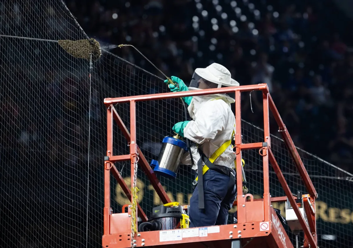 ووفق «وكالة الصحافة الفرنسية»، أُخِّرت المباراة في دوري البيسبول الأميركي الشمالي (إم إل بي) بين فريقَي «لوس أنجليس دودجرز» و«أريزونا دايموندباكس»، مساء الثلاثاء، بسبب استقرار سرب من النحل على سياج فاصل بين المدرّجات وأرض الملعب.