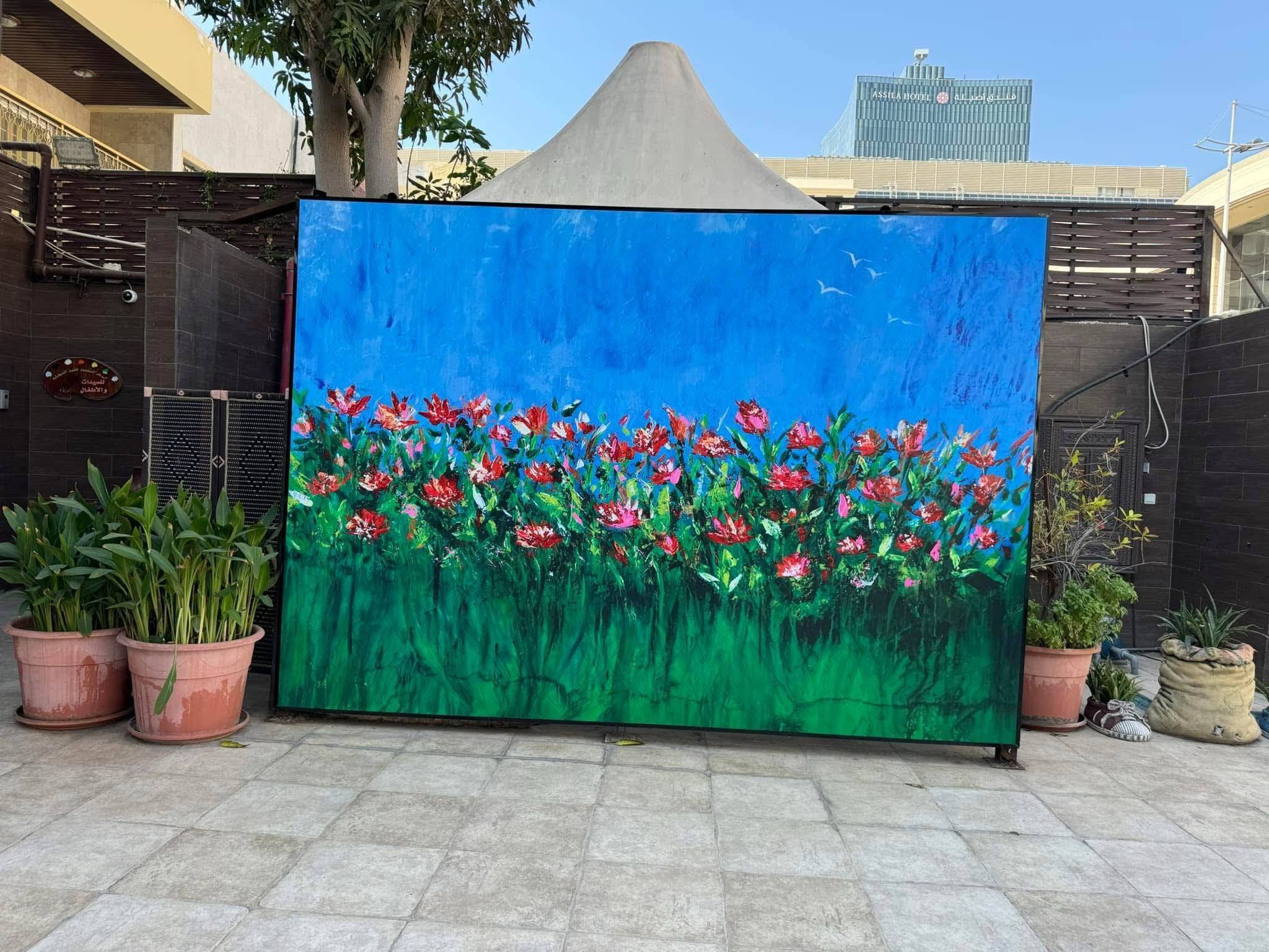 لوحة «عبق» للفنانة القصبي في مدخل المركز السعودي للفنون التشكيلية بجدة (حساب الفنانة على «إكس»)