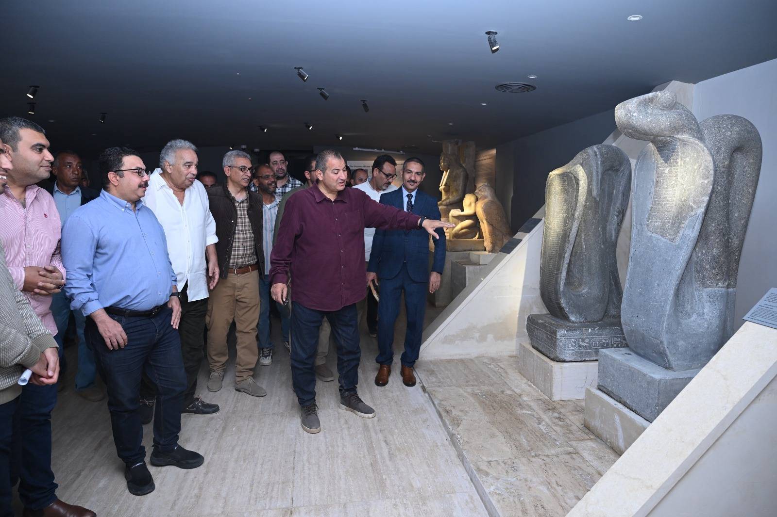 مسؤولون مصريون خلال تفقدهم للقاعة بعد تطويرها بمتحف الأقصر (وزارة السياحة والآثار المصرية)