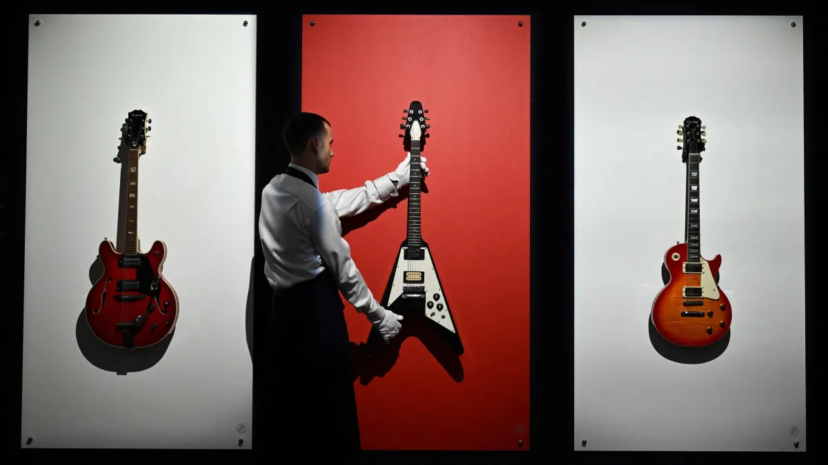بِيعَ غيتار كان يخصّ نويل غالاغر، أحد عضوَي فرقة «أويسيس» التي أعلنت أخيراً عن جولة حفلات بمناسبة عودتها إلى الساحة الفنّية، بأكثر من 130 ألف جنيه إسترليني، خلال مزاد في لندن.