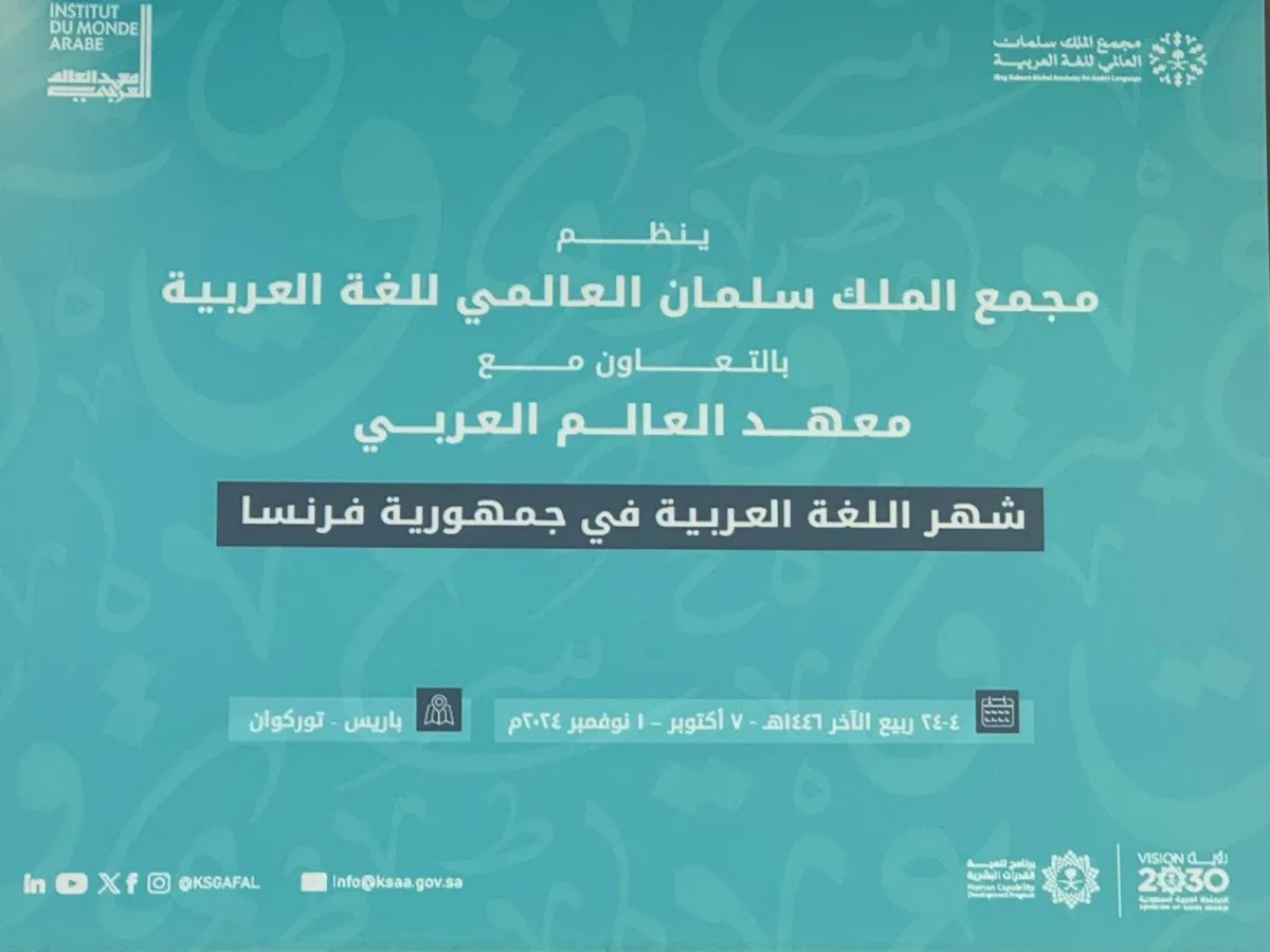 يُذكر أن «برنامج شهر اللغة العربية في فرنسا» يندرج ضمن مبادرة «برامج علمية في تعليم اللغة العربية»، التي أطلقها مجمع الملك سلمان العالمي للغة العربية. وقد نُفِّذت من البرنامج نُسخٌ في دول كثيرة، من بينها: أوزبكستان، وإندونيسيا، والصين الشعبية، والهند. ويستمر المجمع في تقديم البرنامج في سياق عمله اللغوي والثقافي على المستوى الدولي. وتتواصل أنشطة شهر اللغة العربية في فرنسا حتى الأول من نوفمبر (تشرين الثاني)، وينتقل إلى عددٍ من المدن الفرنسية بالتعاون مع مؤسسات تعليمية.