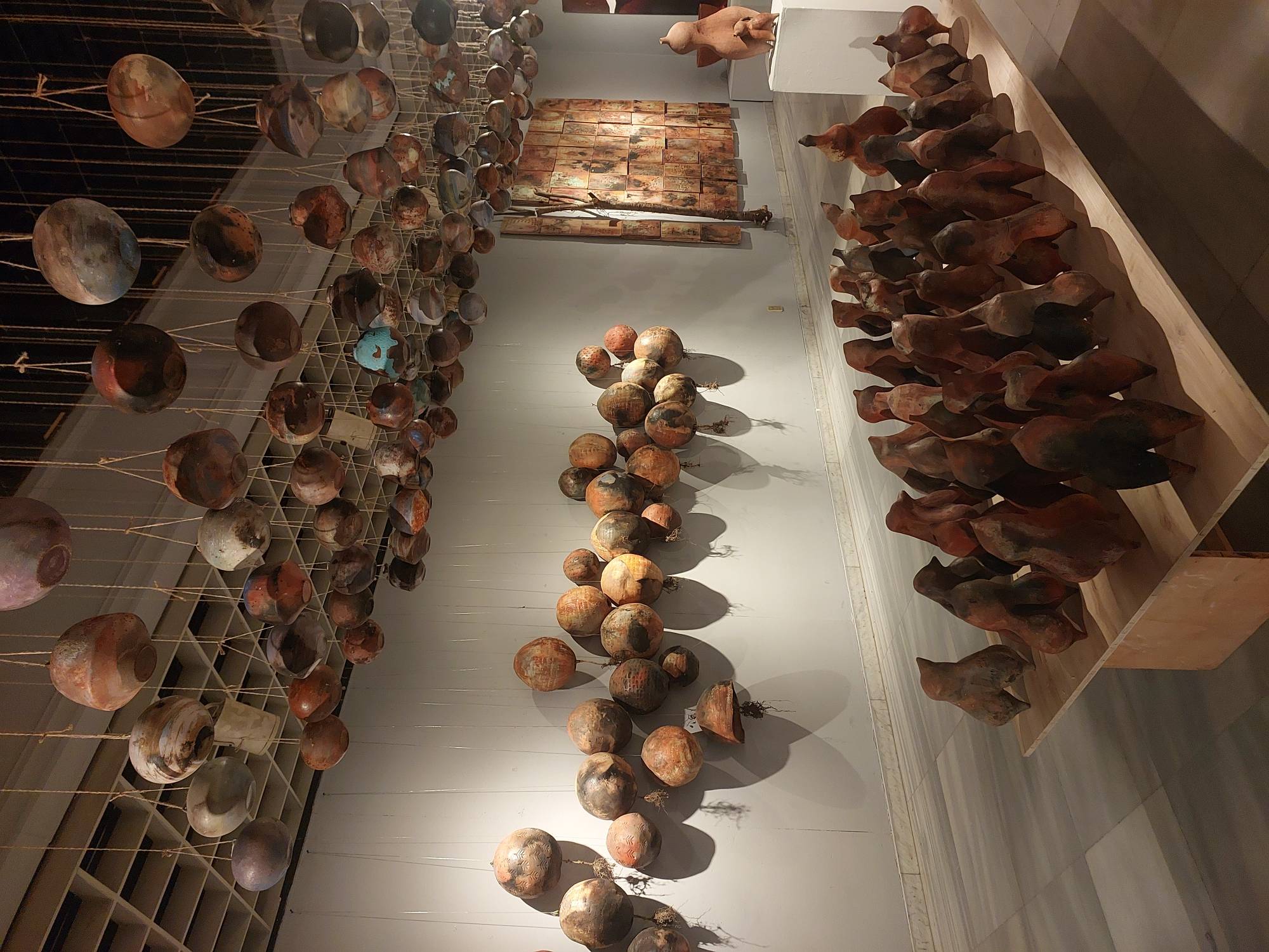 ويبدو المعرض لمن يرتاده كأنه عرض متحفي يقام داخل بهو فرعوني من حيث تباين وتناسق عرض القطع مختلفة الأشكال والأحجام والألوان.