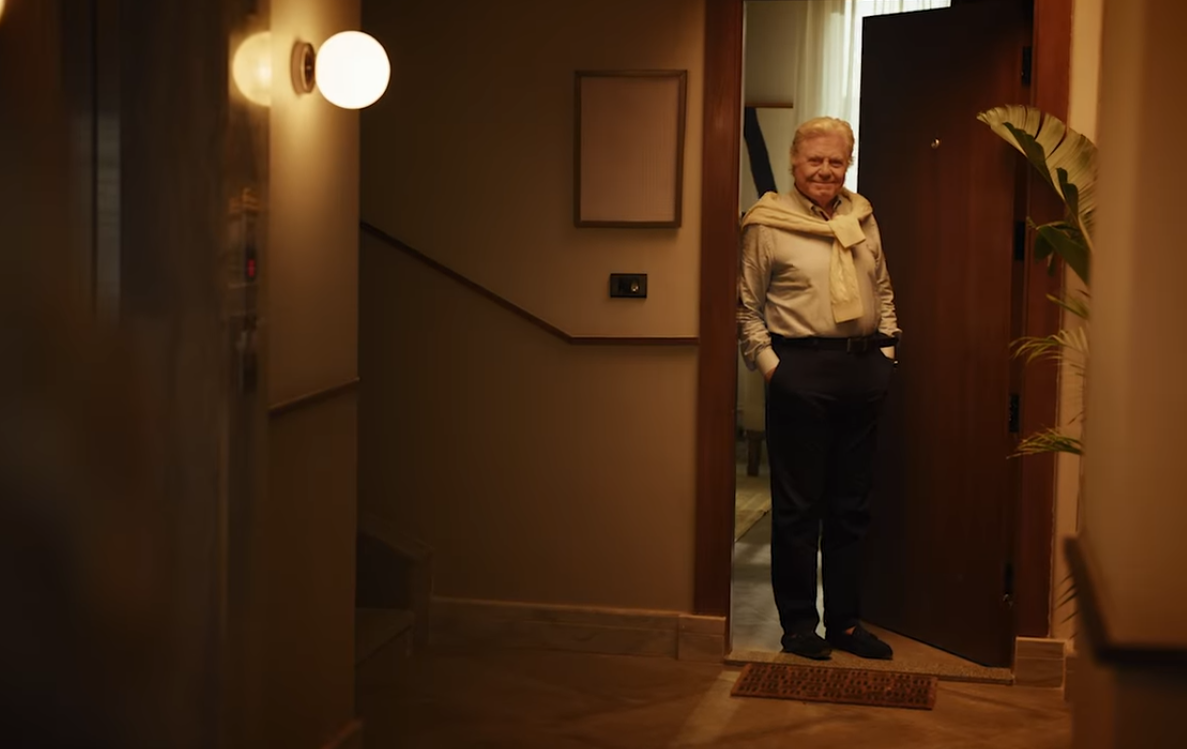 ويعرض الإعلان عبر موقف درامي للقاء بين كل اثنين، قد يبدو أنه وقع بالصدفة، لكنه في الحقيقة ليس كذلك، إذ تذهب ميرفت أمين لتدق باب حسين فهمي الذي يسكن شقة أمامها، ثم تعود مسرعة وُتغلق بابها، ليخرج فهمي، فتفتح الباب وكأنه لقاء الصدفة، وتجمعهما مشاهد أخرى داخل «الكومباوند السكني» مع بقية نجوم الإعلان.