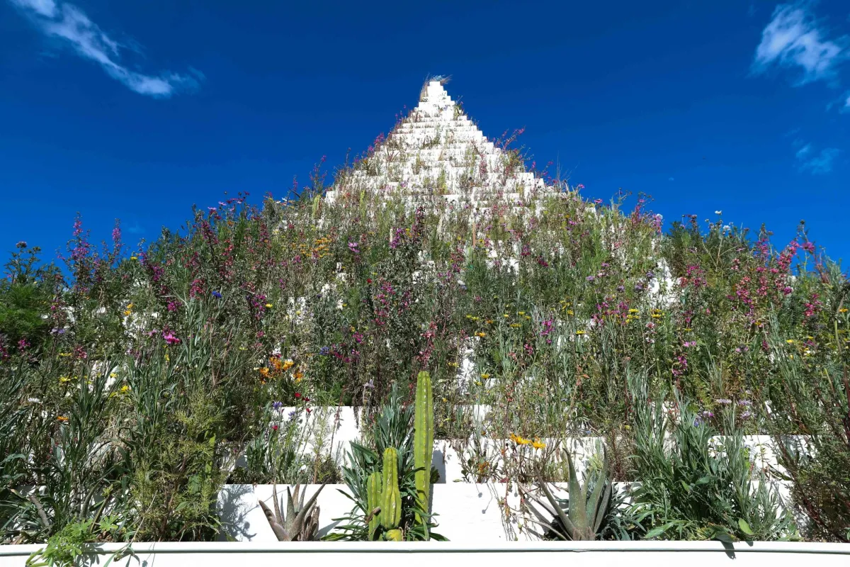 «الهرم الحي» للفنانة آغنيس دينيس (أ.ف.ب)