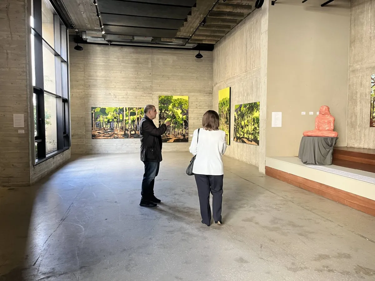 حوار صامت وعميق يدور بين الرسامة وأعمالها، ينعكس على المكان والزمان والذاكرة والنسيان. فالانسلاخ عن الجذور تكسره جاذبية العودة. كأن هناك قوة غير مرئية تحرِّك مشاعر الشوق عندنا.
