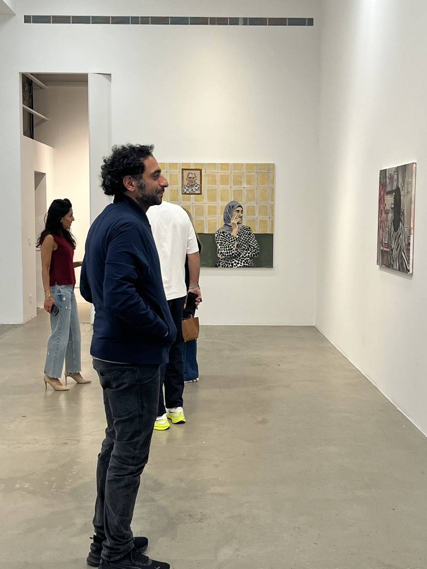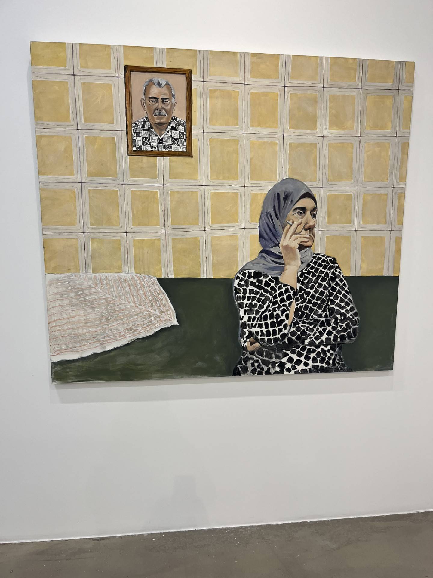 وتوضح ميسم هندي في سياق حديثها: «إنها الجارة التي تسكن بجوارنا، وهي واحدة من الشخصيات المزروعة في يومياتي. تماماً كما أخرى لجدَّتي نُشاهدها بين لوحات المعرض». وترسم جدّتها تدخّن سيجارة على خلفية حائط من الحجر الأصفر يحمل صورة الجدّة.