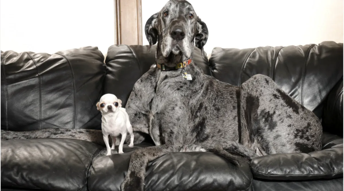 «ريجي»، كلب من فصيلة «الدنماركي» العظيم، يبلغ طوله أكثر من متر، ويعيش مع عائلته في أيداهو، في حين لا يتجاوز ارتفاع «بيرل» من نوع «شيواوا» حاجز التسعة سنتيمترات، وتعيش في ولاية فلوريدا.