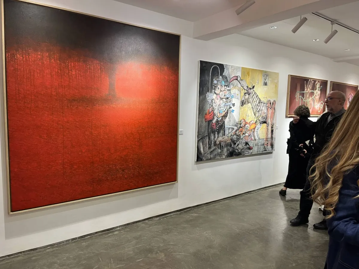 تتصدر صالات الغاليري لوحات عملاقة مرسومة بالزيت، وأخرى بتقنية «الميكسد ميديا»، إلى جانب لوحات بأحجام متنوعة مصطفَّة على الجدران، ترافقها منحوتات برونزية. يشعر الزائر كأنه في حضرة شريط تاريخي ينبض بحكايات «ألف ليلة وليلة»، فيُسهم المعرض في كسر صمت العاصمة، ويعيد إليها مكانتها بوصفها منارة ثقافية لا تنطفئ.