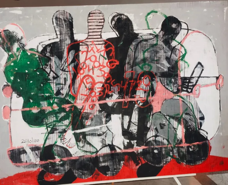 وقال الفنان المصري هشام عبد المعطي إنه قدم عملاً يعبر عن تمثيل رمزي للحياة، مجسداً سيارة فيها مجموعة من الناس، كل شخص له رمزية معينة، مضيفاً لـ«الشرق الأوسط»: «دمجت الأرقام في الرسم لأن الأرقام تمثل جزءاً مهماً من حياة كل إنسان».