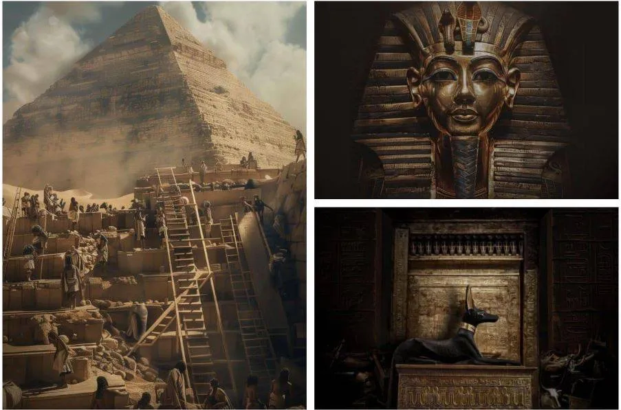 وتتضمن عروض الواقع الافتراضي استكشاف مقبرة توت عنخ آمون، ومحاكاة عملية بناء الأهرامات بتفاصيلها الهندسية والمعمارية المذهلة، والغوص في أسرار الآثار الغارقة على شواطئ الإسكندرية، والتعرف على طقوس وأسرار التحنيط عند قدماء المصريين.