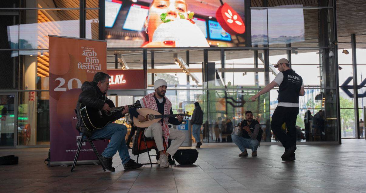 افتتح مهرجان «روتردام للفيلم العربي» دورته الـ25، الأربعاء، بعرض موسيقي قدّمه عدد من الفنانين الشباب بالمحطة المركزية بمدينة روتردام الهولندية، وعزفوا مقطوعات من التراث العربي والفلسطيني، للترويج لانطلاق الدورة الجديدة.