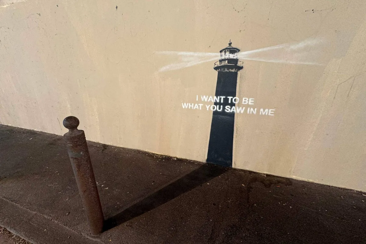 نشر الفنان البريطاني الشهير بانكسي صورةً لعمل فنّي جديد يُعتَقد أنه موجود في مدينة مارسيليا جنوب فرنسا، من دون تأكيد الموقع الدقيق حتى الآن. وقد ظهر على حسابه الرسمي في «إنستغرام»؛ إذ حوَّل ظلّ عمود مروري إلى منارة مضيئة، مصحوبة بعبارة كُتبت بتقنية الاستنسل: «أريد أن أكون ما رأيته فيّ».