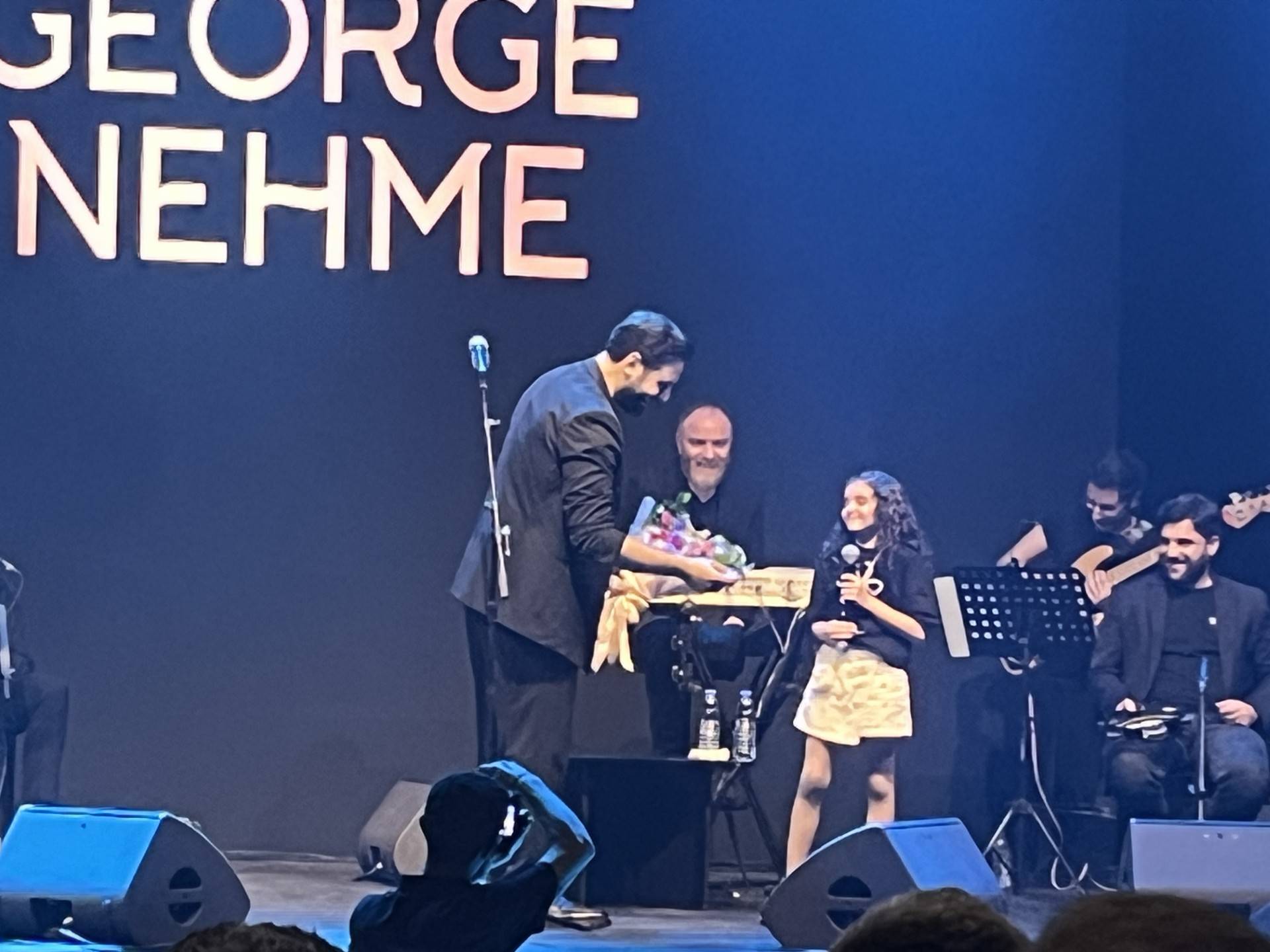 رافقت نعمة على المسرح فرقةٌ موسيقيةٌ مع جوقة كورال. واختار أغنية «احتمال» من ألحان زياد بطرس، فعزف على البيانو مطلع لحنها، ثم دعا الطفلة حيا لمشاركته غناءها على المسرح. فهو، كما روى للحضور، تعرّف إليها عبر وسائل التواصل الاجتماعي، وقد لفتته بأدائها الأغنية رغم صعوبة لحنها، فرغب في تهنئتها على طريقته خلال الحفل في بيروت. فاعتلت المسرح، وقدّمت له باقة ورد، لتشدو بصوتها الطفولي كلمات أغنية «احتمال».