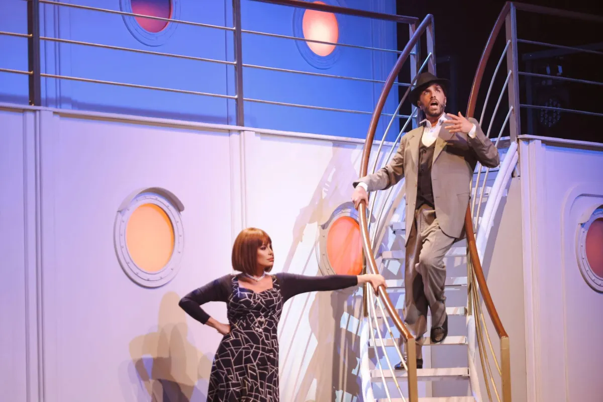 كارول سماحة وروي الخوري على درج سفينة «كلو مسموح» (إدارة المسرحية)