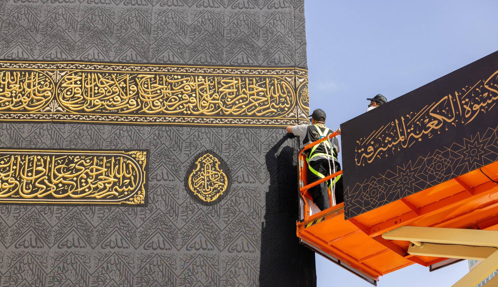 ارتدت الكعبة المشرفة ثوبها الجديد، الأربعاء، جرياً على العادة السنوية من كل عام هجري على يد 154 صانعاً وحرفياً سعودياً مدربين ومؤهلين علمياً وعملياً على أعمال الفك ومراحل تغيير كسوة الكعبة الأساسية المتمثلة في رفع الكسوة القديمة، ونزع المذهبات، وإسدال الكسوة الجديدة، في إرث متواصل من العناية يمتد لـ100 عام.