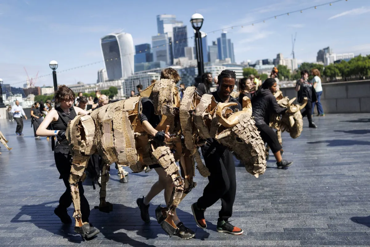 احتضنت شوارع لندن مشهداً آسِراً تمثَّل في موكب من التماثيل الحيوانية بالحجم الطبيعي، تجوب المدينة مثل قطعان فوق رقعة فنّية نادرة. وصيغت الدمى من خامات مُعاد تدويرها، حاملةً في ثناياها حركة وإيقاعاً ورسالة بيئية صارخة، ضمن رحلة عالمية تُجسّد نداءً جمالياً لإنقاذ المناخ.