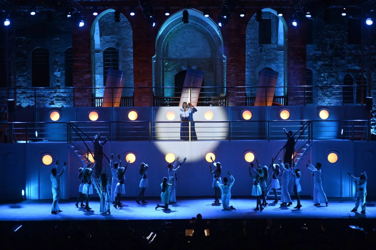وفي الحفل الأول، الذي انتظره كثيرون لم يتمكنوا من متابعة المسرحية في أثناء عروضها المحدودة في «كازينو لبنان»، بدت السفينة التي اعتلاها نجوم العمل وأبحرنا معهم أكبر، وقد ظهرت خلفها قناطر القصر وأعطتها أجواء صيفية مغايرة.