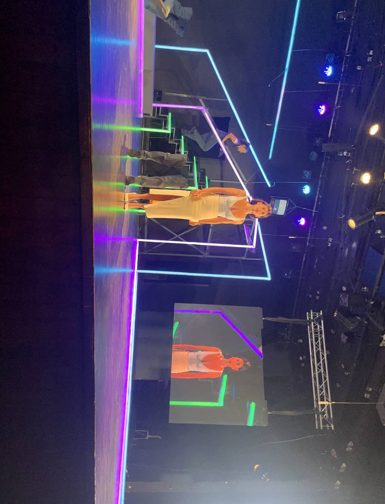 شاشتان عملاقتان على يمين المسرح ويساره، بالإضافة إلى كاميرا متحرّكة يحملها الـ«كاميرا مان»، تُشكّل أدوات الديكور. وبلعبة إضاءة مدروسة، يكسر يمّين مشهدية استوديو رمادي، وقد ثبّت على الخشبة «بروجكتورات» مُسلّطة أضواؤها على المذيعة، تُشغّل تلقائياً عندما تلفظ منتجة العمل كلمة «توب كاميرا».