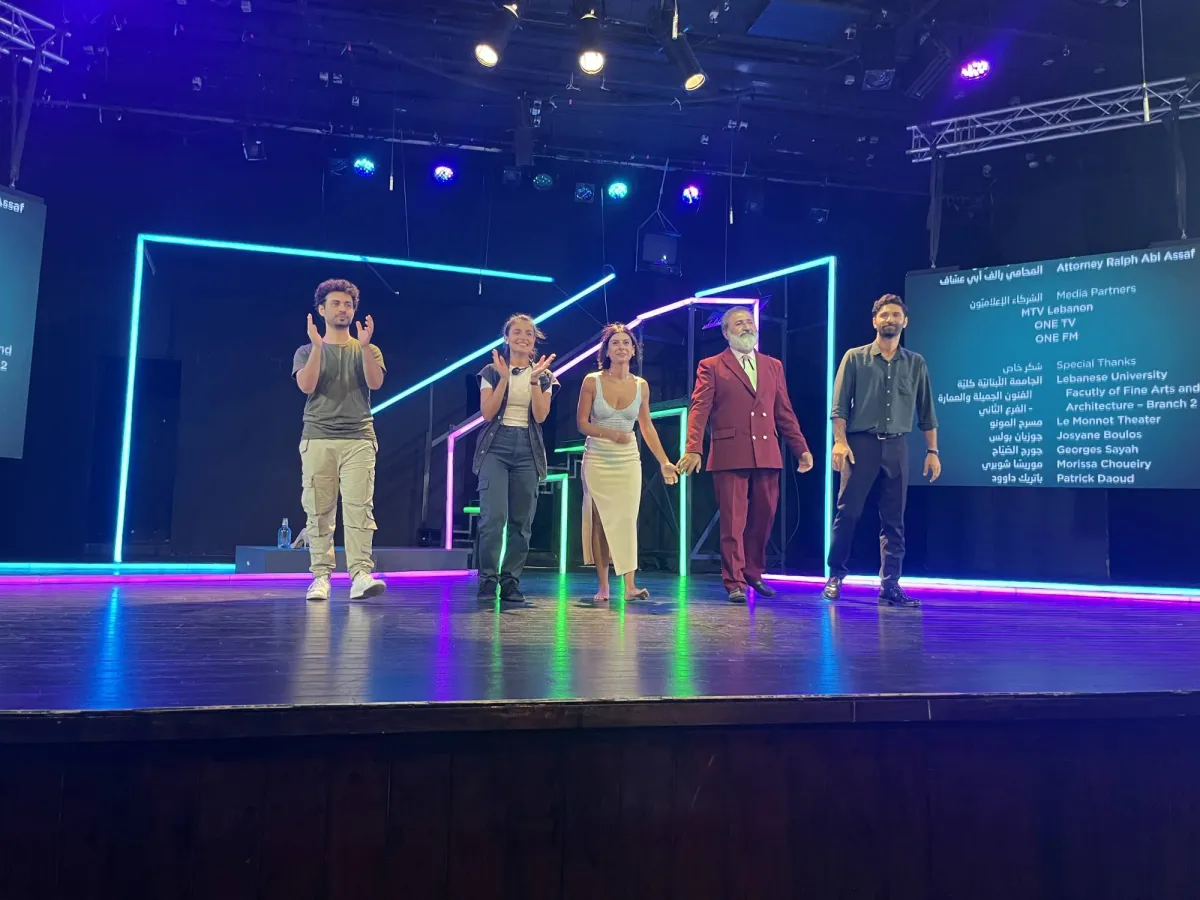 المسرحية (مسرح المونو في بيروت)، من إخراج غبريال يمّين، وتأليف عبير صيّاح التي تؤدّي بطولتها إلى جانب جينا أبو زيد، وبيو شيحان، ومنير شليطا. ويَحلّ فيها ضيوف شرف افتراضيون عبر شاشة تلفزيون عملاقة، فتطلّ الممثلة كارمن لبّس، والممثل نقولا دانيال، ونسمع صوت الفنان جورج خباز من دون أن نرى صورته.