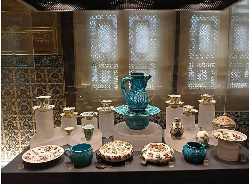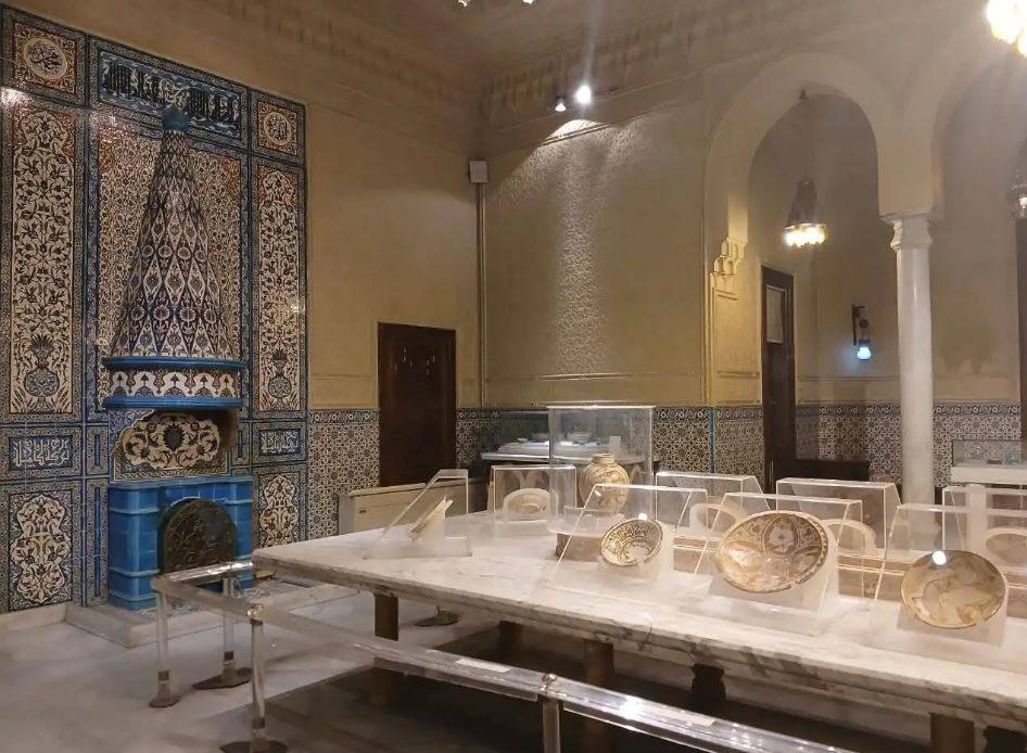ويضم المتحف قطعاً نادرة تعود للقرن الثاني عشر الميلادي، معروضة في قاعة الأمير التي تضم 5 قطع خزفية نادرة، وتتوسط القصر القاعة الرئيسية المتمركزة حول نافورة من الرخام الملون، وبها مجموعة من نوافذ الزجاج الملون المؤلف بالجص، كما يتميز المبنى بعناصر معمارية أخرى، من بينها الأسقف والحوائط المحلاة بالزخارف النباتية والهندسية والكتابات التي تبرز جماليات الخط العربي.