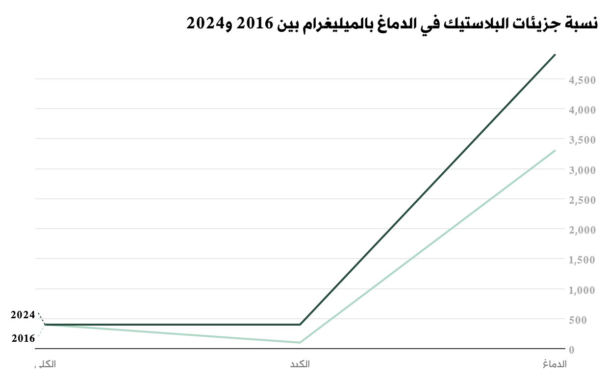 الدراسة الأحدث التي نُشرت حول الموضوع العام الماضي في مجلة «Nature Medicine»، أشارت إلى أن كمية البلاستيك في الدماغ البشري تضاعفت بنسبة 50 في المائة ما بين 2016 و2024. وأخطر ما تبيّن، أن الأشخاص المصابين بالخرف تحتوي أدمغتهم على كميات أكبر من الجزيئات البلاستيكية.