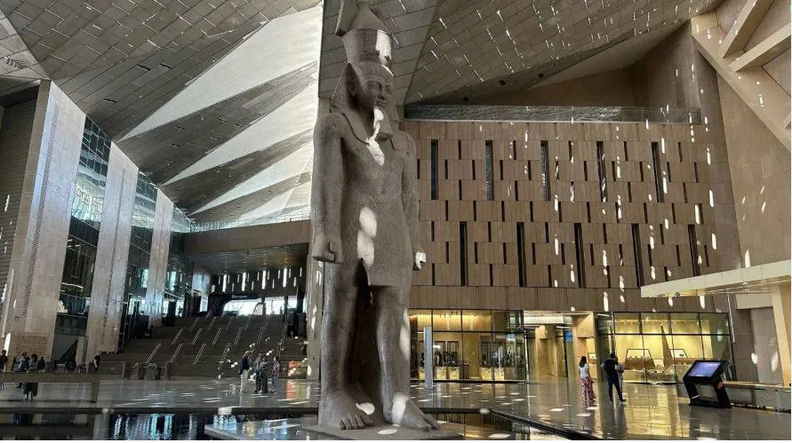 وشيدت مصر المتحف المصري الكبير بالقرب من أهرامات الجيزة (غرب القاهرة)، على مساحة 117 فداناً، ليشكل ما يمكن عدّه منطقة متحفية مفتوحة على الأهرامات، ويعرض مقتنيات «الفرعون الذهبي» توت عنخ آمون كاملة للمرة الأولى منذ اكتشافها، التي يتجاوز عددها 5 آلاف قطعة أثرية.