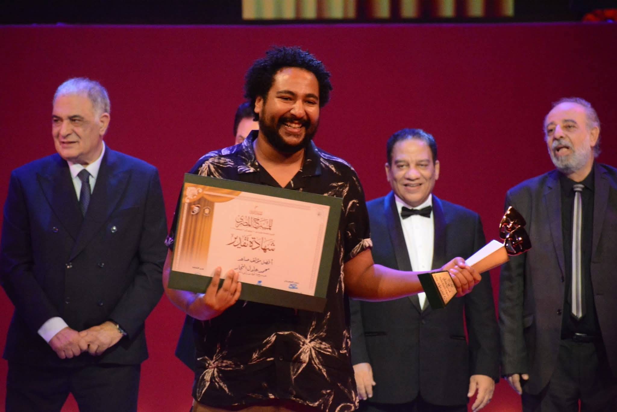 وحصد العرض المسرحي «جسم وأسنان وشعر مستعار» جوائز «أفضل إخراج مسرحي» التي ذهبت لمازن الغرباوي، و«أفضل ممثلة صاعدة» التي حصلت عليها مناصفةً نغم صالح بطلة العرض، ونيللي الشرقاوي بطلة عرض «الوحش»، وكذلك جائزة «أفضل موسيقى» التي نالها مناصفةً أيضاً كلٌّ من محمود عز ومحمود شعراوي، المؤلّفَيْن الموسيقيَّيْن بالعمل، وزياد هجرس عن عرض «ثرثرة».