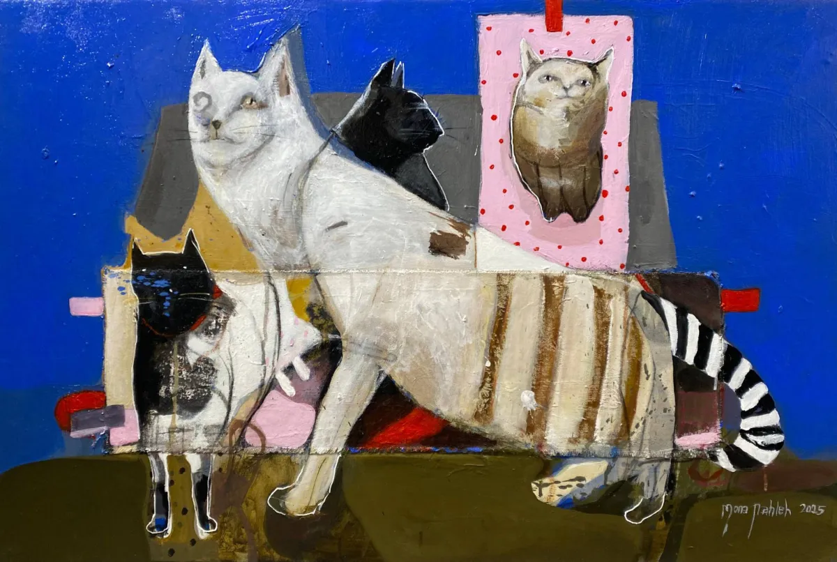 في هذا الصيف البيروتي، اختارت «غاليري آرت سين» في قلب منطقة الجميزة أن تجعل القطّة محور احتفال فنّي متنوّع حمل عنوان «قطط على القماش». المعرض استضاف أعمال فنانين مخضرمين وأسماء صاعدة، في تجربة جماعية بدت كأنها مساحة حرّة تتيح لكلّ فنان أن يُقدّم رؤيته لهذا الكائن المُلهم، سواء أكان موضوعه الأليف في الحياة اليومية، أو رمزاً أسطورياً، أو شخصية مُتعالية تمشي في لوحته كما تمشي القطّة في العالم: بثقة، وبلا استعجال، وبإحساس أنها مالكة المكان.