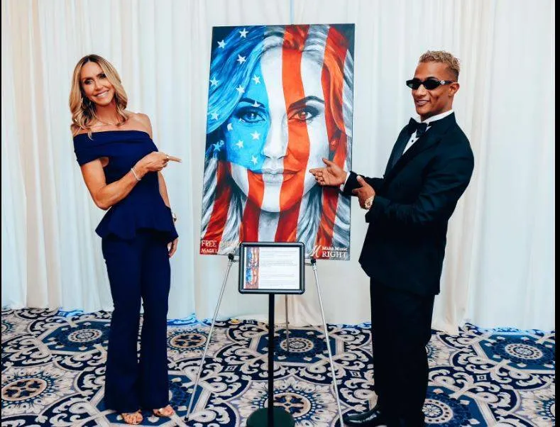 ولارا ترمب إعلامية ومنتجة تلفزيونية وسياسية، ظهرت في الصور والفيديو الذي نشره رمضان على صفحاته «السوشيالية» خلال حفل لمبادرة تحتمل عنوان «اصنع موسيقى صحيحة» (Make Music Right).