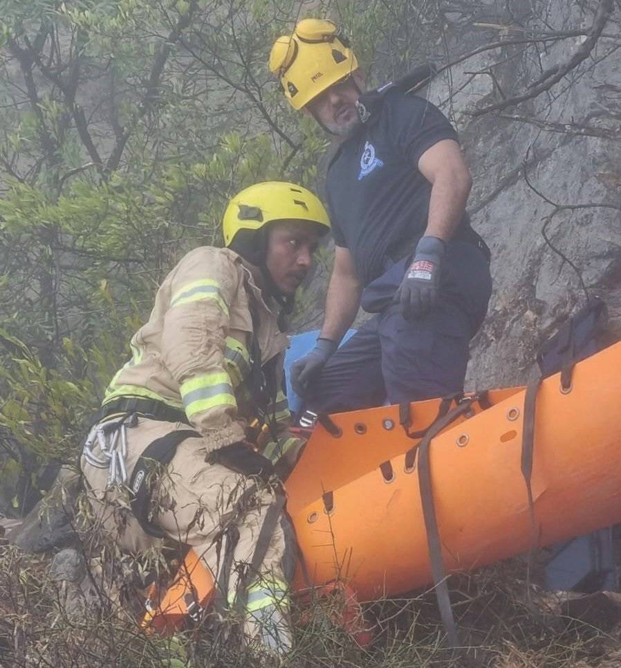 عمليات الإنقاذ لانتشال الشاعر سعود بن معدي القحطاني بعد سقوطه من جبل سمحان في صلالة (هيئة الدفاع المدني)