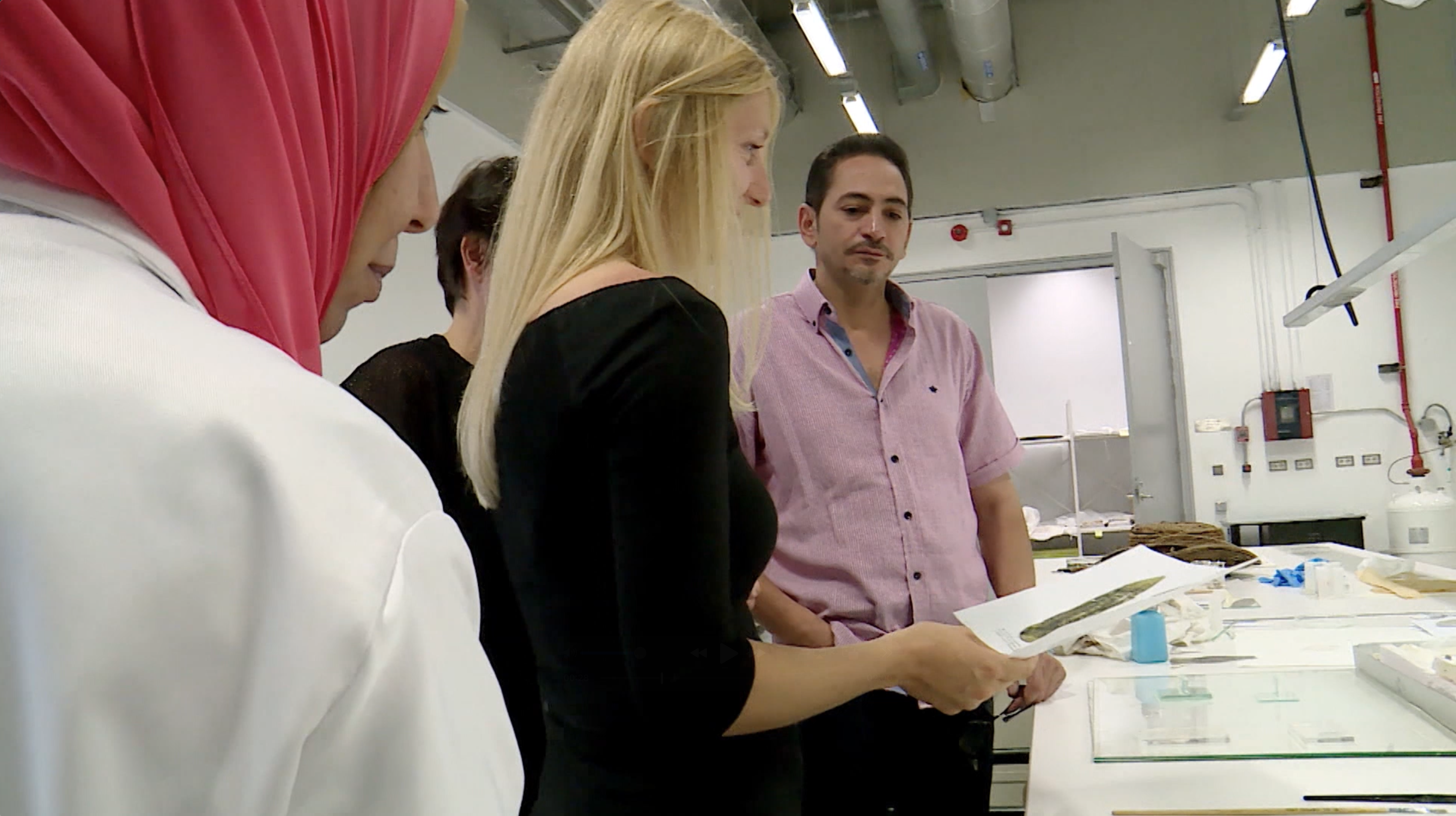في أحد المقاطع يتحدث بيرند مولر، مصمم ديكور داخلي والشريك المشارك في أتيلييه بروكنر: «كانت مهمتنا هي العثور على أفضل عرض وأفضل مفهوم مع اختيار الأشياء، كل شيء يتعلق بالقصة التي تريد إظهارها للزائر، أشياء توت عنخ آمون ثمينة للغاية، لذلك كان لا بدَّ أن تكون هذه الواجهة مضادة للرصاص، انتهى بنا الأمر بتصميم خزانة عرض مصنوعة من زجاج بسمك 40 ملليمتراً، لم يُسمح لنا بلمس الأشياء، فقط النظر إليها لتطوير أفكارنا، عندما ترى كيف يتعامل الأشخاص في مركز الترميم مع الأمر تكتشف مدى أهمية عملك في المشروع بأكمله».