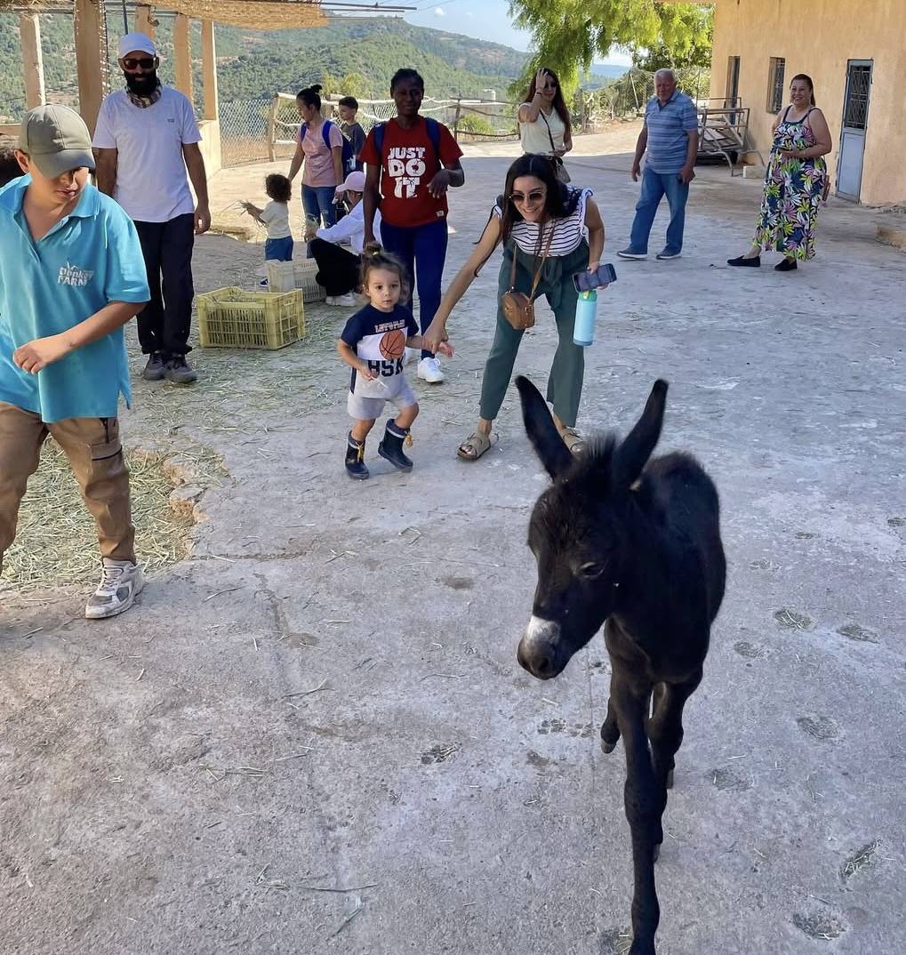 هنا «ياسمينا» تجلس أرضاً محتضنةً أرنباً، فيما يعدو شقيقها «جورج» خلف الإوزّ. يلهوان إلى حين حلول اللحظة المنتظرة. تطلّ «سلطانة» ليتناوب الطفلان على التجوّل عليها، بمواكبةٍ من أحد عمّال المزرعة. «لا خطر إطلاقاً على الأطفال»، يطمئن أبو عاصي مضيفاً أن الحمار بطبيعته حيوان لطيف جداً ويُغدق حناناً وعاطفة على كل من يدنو منه. يذهب إلى حدّ القول إنّ «مجاورة الحمير والاهتمام بها هي بحدّ ذاتها علاج يريح النفوس ويمنحها السعادة».
